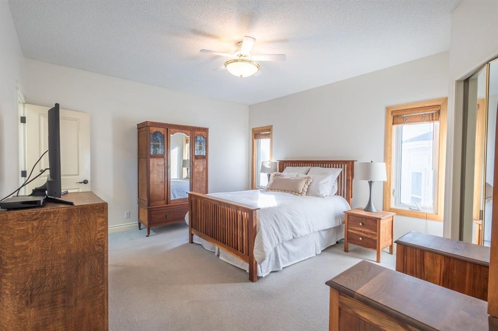 Welcome to this beautifully maintained home situated on a desirable corner lot on a quiet cul-de-sac with a fully fenced backyard, perfect for families and outdoor enjoyment. Thoughtfully updated and well cared for, this property offers triple-pane windows, a newer furnace, air conditioning, and a convenient parking pad in the back. Step inside to a bright and spacious living room featuring stunning panoramic windows that flood the space with natural light and highlight the beautiful hardwood flooring. The living room flows seamlessly into the open dining area, creating a wonderful space for entertaining and everyday meals. The kitchen is both functional and welcoming, complete with an island, stainless steel appliances, and a window above the sink overlooking the backyard. An adjacent eating nook provides direct access to a great-sized west facing deck and the yard—ideal for summer barbecues and relaxing evenings outdoors. Continuing on this level the spacious primary bedroom offers a walk-in closet and a gorgeous fully renovated 4-piece ensuite featuring a stand-alone shower, soaking tub, in-floor heating and skylight for added natural light. Two additional bedrooms share a beautifully renovated 4-piece bathroom, offering comfort and style for family or guests. The fully developed basement expands your living space with a large family room with impressive oversized windows and a corner fireplace with a wooden mantle and tile surround, perfect for cozy evenings in. Three additional bedrooms share a beautiful 4-piece bathroom complete with dual vanities, a stand-alone shower, and in-floor heating. Laundry is conveniently located on this level as well. With its thoughtful layout, modern updates, and prime corner lot location, this home offers the perfect combination of comfort, space, and functionality.