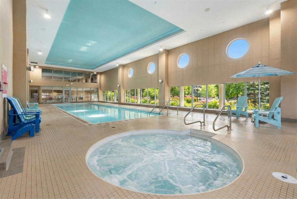 Perched on the 20th floor, this bright and well laid out 2 bedroom, 2 bathroom condo offers the kind of experience that truly sets it apart. Prepare to enjoy mountain views, along with an abundance of natural light pouring in through the bright generous windows. The open concept layout is both practical and inviting, perfect for everyday living and effortless hosting. Step inside to enjoy a home that’s been beautifully renovated. Sleek new LVP flooring spans the living and bedroom areas, refreshed cabinetry with modern hardware brightens the kitchen, and granite countertops paired with updated appliances complete the move-in ready space.The living room features a corner gas fireplace that adds warmth and character, while central air conditioning keeps the space comfortable year round. The bedrooms are thoughtfully positioned, making this layout ideal for professionals, small families, roommates, or those working from home. Step outside to your balcony and take in the open sky and endless views. This well managed complex offers exceptional amenities that add real value to everyday living, including an indoor pool and hot tub, a fully equipped fitness centre, games room, party rooms, on site management, and full time security for peace of mind. The unit also comes with one titled parking stall, assigned storage, and secure visitor parking on the first level of the parkade, offering convenience for both you and your guests. Location truly elevates the experience. The Westbrook LRT station is less than a block away, making commuting downtown simple and quick. Walmart, Safeway, restaurants, and other amenities are directly across the street, giving you true walkable access to daily essentials. If you are looking for comfort, convenience, and incredible views in a prime location, this home checks all the boxes! Welcome Home.