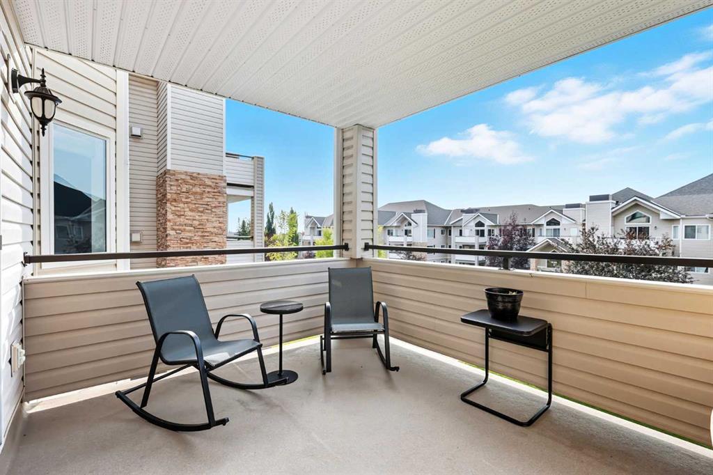 Set in the desirable Springbank area, this corner unit, updated 2-bedroom, 2-bathroom condo delivers an ideal balance of style, comfort, and everyday practicality. Offering over 1,100 sq. ft. of living space, this home has been thoughtfully improved with both recent and past upgrades that ensure it feels fresh, modern, and move-in ready. The spacious, open-concept layout allows for an effortless flow between living, dining, and kitchen spaces. A corner gas fireplace and baseboard heaters create a warm and welcoming atmosphere, while the south-facing balcony draws in abundant natural light. Measuring an impressive 12' x 9'7" , the covered balcony is an inviting retreat for outdoor dining or relaxing in the sun. Equipped with a gas BBQ hookup and a storage room, it extends your living space and enhances functionality. The kitchen has seen stylish updates, including a new countertop, along with a new fridge and microwave range hood fan combo added just last month. Complemented by modern lighting, and a convenient breakfast bar, the kitchen is both practical and appealing. Every room in the unit has been freshly painted, adding to the bright, clean feel. The primary bedroom is a private retreat featuring a walk-in closet and a full ensuite complete with soaker tub and separate shower. The second bedroom is thoughtfully positioned on the opposite side of the unit, offering privacy for guests or family, with a second full bathroom close by. Additional highlights include new in-suite washer and dryer just purchased in December 2025, newer carpeting, updated light fixtures, and fresh details throughout, making the space feel current and well cared for. This property also comes with 2 titled underground parking stalls, an extra storage locker, and access to a secured bike storage room in the parkade. The building itself is well-constructed with a mix of stone and vinyl siding, supported by a durable wood frame, and has been well maintained by a diligent condo board. With quick access to major roadways and the new Ring Road, commuting is straightforward, and the location offers excellent proximity to both city amenities and mountain getaways. This is a fantastic opportunity to own a spacious, upgraded condo in a well-run complex — one that combines convenience, value, and lifestyle. Arrange your showing today and see why this home stands out.