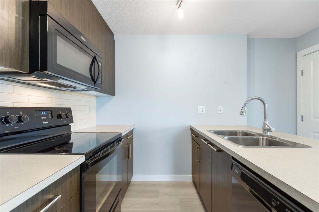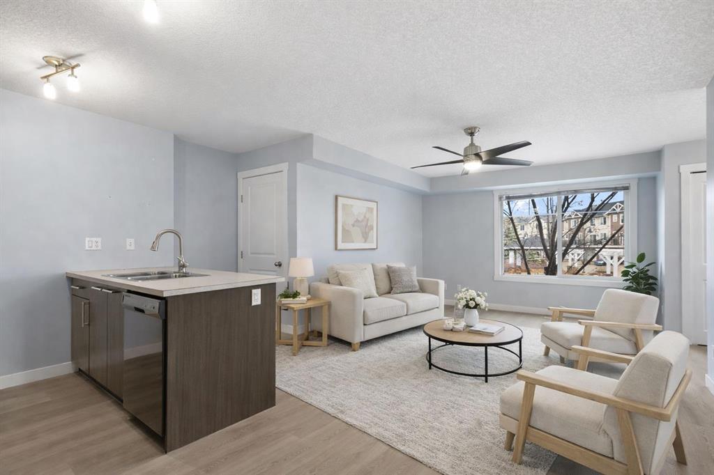 Welcome home to this perfectly situated, bight and sunny, south facing, two bedroom, one bathroom, unit with an assigned parking stall right outside of your private entrance! You won't want to miss this one! The large, open living space with treed south facing views welcomes you home from the end of the day. The kitchen, with breakfast bar, is the perfect spot for prepping dinner with friends, or hanging out with loved ones on a lazy Sunday morning. There are two spacious bedrooms, each with ample closet space and a private aspect. The huge, covered balcony is perfect for BBQ season, or for a lounge in the sun, whenever summer returns again. The three piece washroom as a newer walk-in shower (2022), and the hot water heater (2025), washer/dryer (2023), fan lights (2023), flooring and paint (2022) have all be done, so you can move in and just start living. You'll appreciate the layout as much as the in suite laundry and storage. Park your car and walk to all this area has to offer. Your steps from the picnics at the lake (it's just across the road!), grocery stores and shops, restaurants and coffee bars! Call your favourite realtor to schedule your showing today!