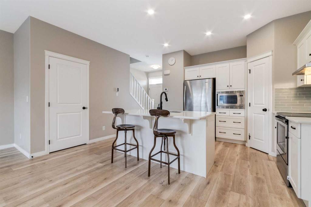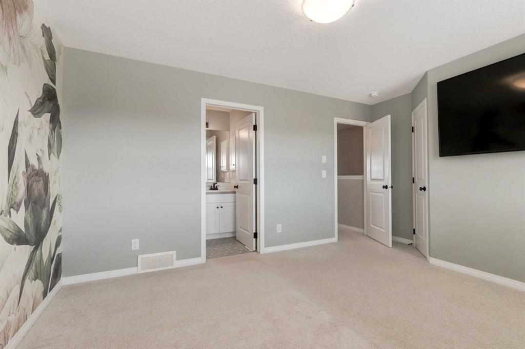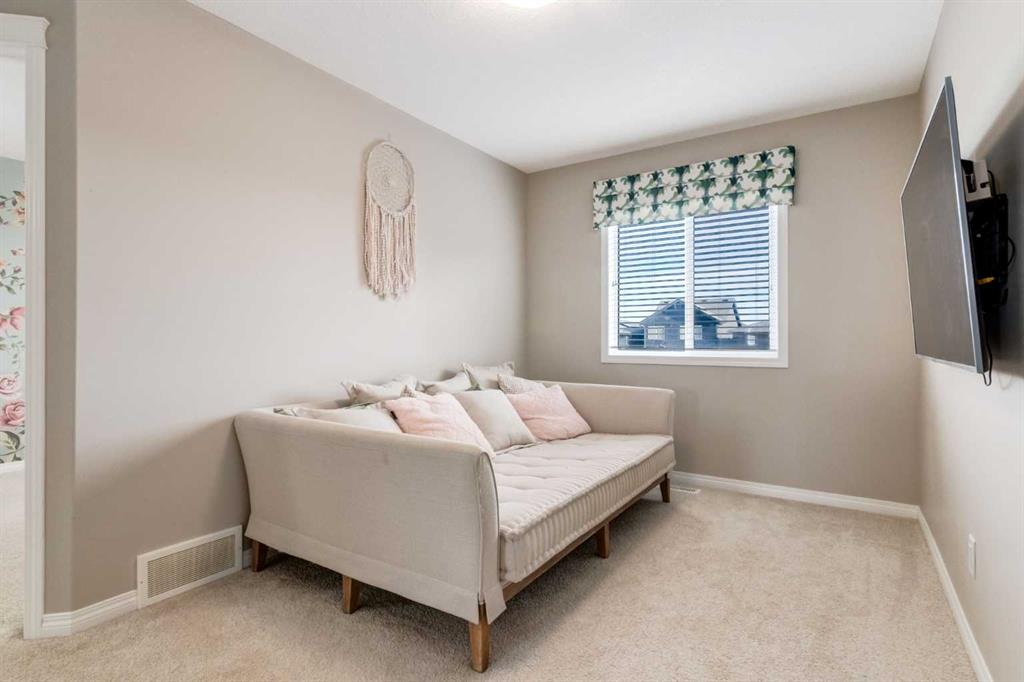 Welcome to this former Morrison showhome in the vibrant SW community of Belmont — a thoughtfully designed home offering flexibility, comfort, and future growth potential. Just off the front entrance, a versatile flex space can easily serve as a main floor bedroom, office, or study. The open-concept layout flows into a stylish kitchen featuring a built-in microwave and seamless sightlines to the dining and living areas, while the east-facing backyard fills the home with beautiful morning sunlight. Outside, the spacious 20' x 24' detached garage provides ample storage and comfortable parking for two vehicles. Upstairs offers two bedrooms and a generous bonus room that could be converted into a third bedroom, and the unfinished basement is ready for your personal vision. This home also has air-conditioning and security cameras. As Belmont continues to grow, exciting future amenities are planned including a recreation centre, library, schools, and a transit hub with a future LRT stop, making everyday living even more convenient. Ideally located in Calgary with quick access to Macleod Trail and Stoney Trail, plus connections to cycling pathways and major routes, this quiet and well-buffered neighbourhood offers both accessibility and peaceful residential charm.