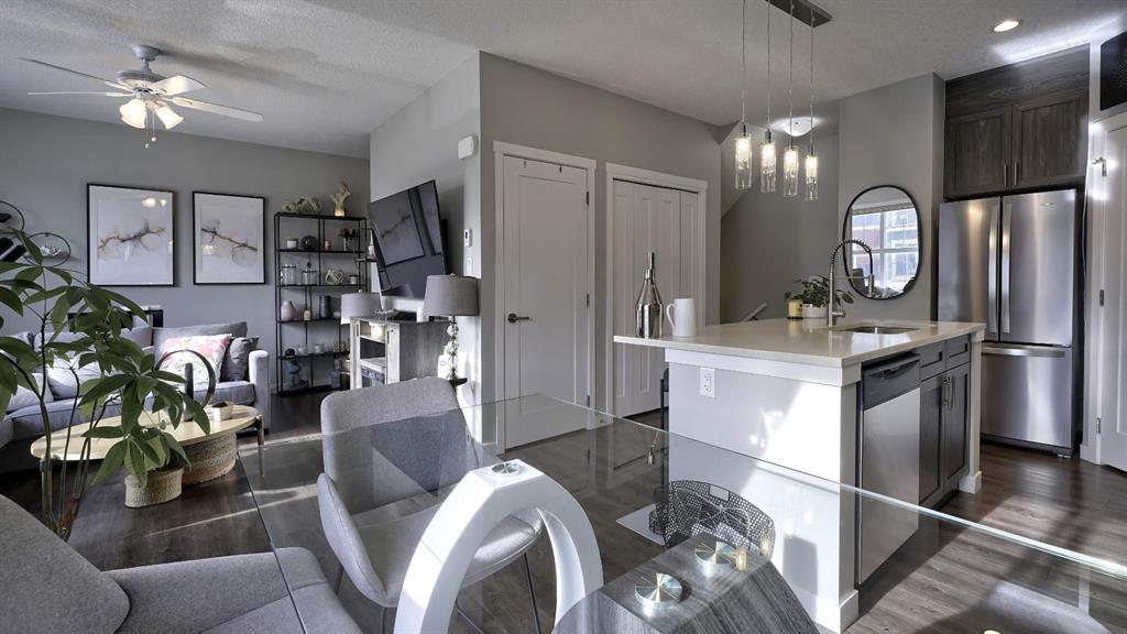 Welcome home to this immaculately kept modern townhome in Nolan Hill. This town home with over 1200 square feet of living space is the perfect blend of comfort and convenience, just minutes away from shops, parks, walking paths and a brand new school! Showcasing 2 bedrooms, 2.5 bathrooms, and a single front attached garage, this property is perfect for professionals, small families, or anyone seeking a comfortable and stylish living space. Walking in you are immediately greeted by the open floorplan, seamlessly connecting the living, dining, and kitchen areas. The kitchen is a chef's dream, featuring a sleek kitchen island and luxurious quartz countertops with plenty of storage in cabinets and the corner pantry. Moving upstairs, the primary bedroom is a true retreat with its automatic window coverings and cozy balcony. The primary bedroom is accompanied by a walkthrough closet with tons of storage and completed with an ensuite bathroom, providing a private oasis for relaxation and rejuvenation. The additional bedroom is spacious and versatile - currently being used as an office but there is plenty of space to make this your own. This bedroom has direct access to another full bathroom showcasing a soaker tub meant for relaxation. Now to focus on the community, Nolan Hill is a highly sought after community that houses any and all amenities that you could need - retail stores, restaurants, child care and so much more. There is a brand new K-9 school being built in the community so this is the perfect space for the family! It also boasts direct access to major routes to leave the city or make your way to down town Calgary. Deerfoot Trail and Stony Trail are right around the corner. Commuting from this area is a breeze! Don't miss out on the opportunity to own this exceptional townhome in Nolan Hill. With its modern features, prime location, spacious living area, and comfortable living spaces, this is the perfect place to call home. Contact me to schedule a showing today!