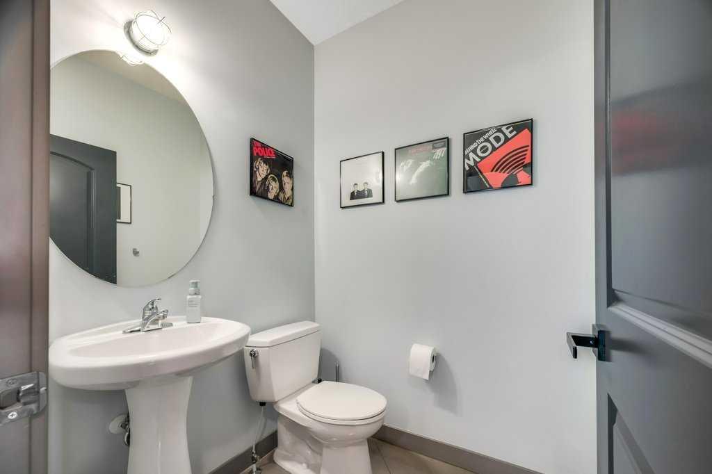 Sophisticated and edgy in its design, this home stands out with dramatic paint tones and large polished concrete tiles that deliver durability, functionality, and undeniable character. While the open-concept main floor is designed for everyday living and connection. At the heart of the home, the modern kitchen features upgraded stainless steel appliances, a large island with eating ledge, and a customized walk-in corner pantry. Sliding glass doors open to a private, low-maintenance backyard, and the kitchen window offers direct views of the schoolyard—providing both peace of mind and a sense of extended outdoor space.