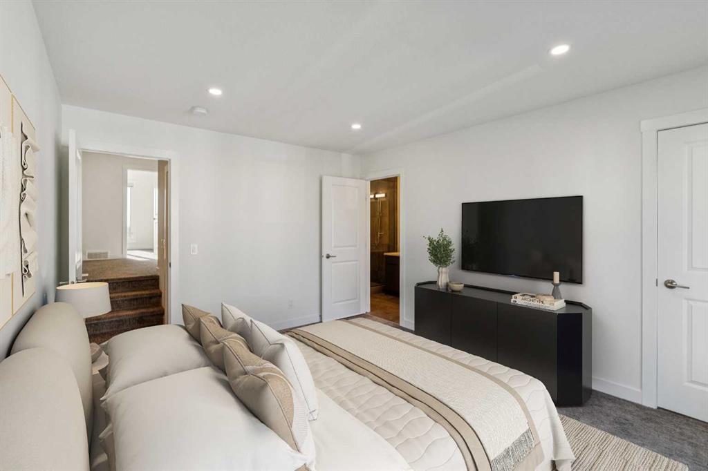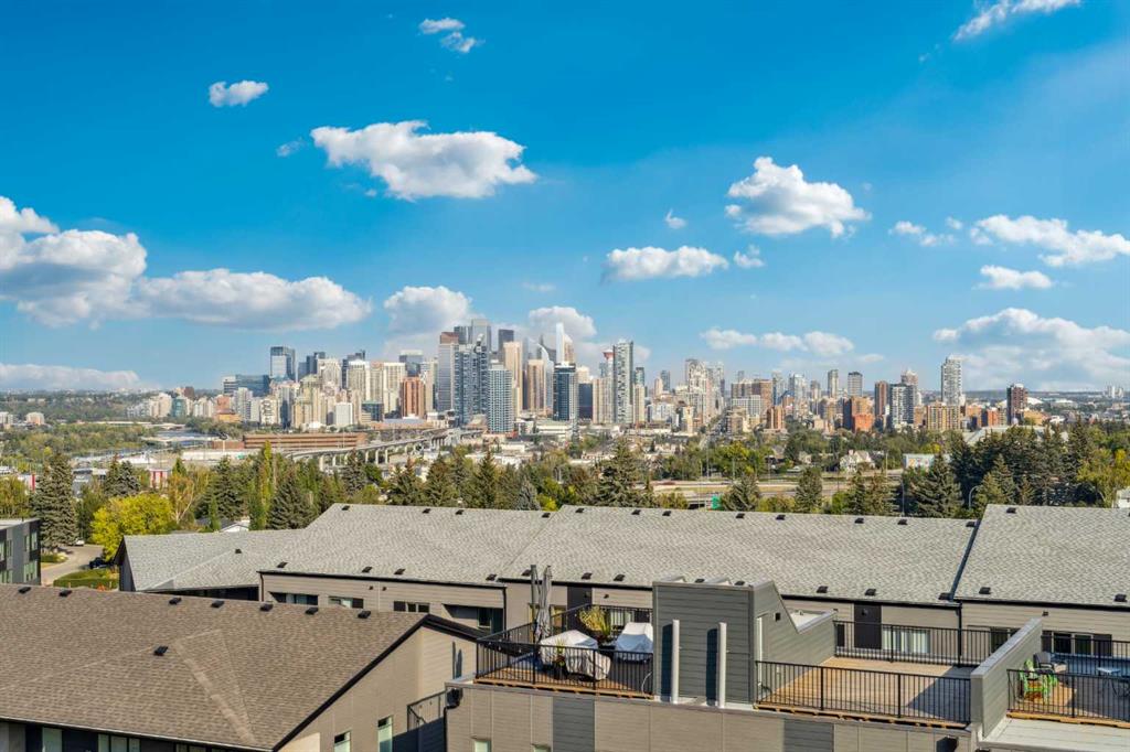 Perched at the highest point in Crown Park with the BEST VIEWS in the complex, this sophisticated Rouge walk out end-unit townhome was one of the first sold by the developer, offering a rare blend of urban convenience, contemporary design and DIRECT CITY SKYLINE VIEWS FROM 3 LEVELS setting it apart from other units (NO GST!). Steps from walking paths, parks, the Bow River, and LRT access, this home places the best of the city and nature right at your doorstep. A private east-facing front patio overlooks the community’s expansive green space and beautifully maintained raised garden beds — an inviting introduction to the lifestyle that awaits. Inside, the entry-level welcomes you with a flex space ideal for a home gym, office, or studio, as well as access to a private double attached garage with additional storage. Ascend to the main living level, where soaring ceilings and a sun-drenched open floor plan define the heart of the home. The chef-inspired kitchen features a premium stainless steel appliance package, sparkling quartz countertops, and a waterfall island. A stylish adjacent bar area, complete with wine fridge and additional cabinetry, is perfect for entertaining and crafting your signature cocktail. The dining room serves as the hub for hosting memorable meals, while the spacious living room centers around a sleek linear gas fireplace ready with TV wall mount already installed. Step out onto the east-facing balcony, with full city views, overlooking the community’s tranquil green space—perfect for morning coffee or evening unwinding. On the upper level, discover three well-appointed bedrooms, a bonus flex area, and convenient upper laundry. The primary suite features a 4-piece ensuite and walk-in closet, while two additional bedrooms share a beautifully designed 3-piece bath. The central bonus area offers a perfect spot for a kids’ play area, study nook, or cozy reading lounge. But the true showstopper awaits above — the private rooftop patio. With the best direct views of Calgary’s downtown skyline to the east when sitting and enjoying the sun and glimpses of the west, this incredible outdoor living space is your personal retreat to watch both sunrises and sunsets in style. This energy-efficient home is thoughtfully designed and EnerGuide-rated, seamlessly blending luxury with sustainability. Located in a community that connects urban living with natural beauty, you’ll enjoy access to the Douglas Fir and Quarry Trails, dog-friendly parks, boutique fitness studios, and some of Calgary’s top dining and entertainment spots. With Bow Trail and the LRT just minutes away, you're effortlessly connected to downtown and the mountains alike. Whether you're entertaining guests, working from home, or escaping to the rooftop to soak in the skyline, this Crown Park masterpiece offers an elevated lifestyle in one of Calgary’s most dynamic new communities.