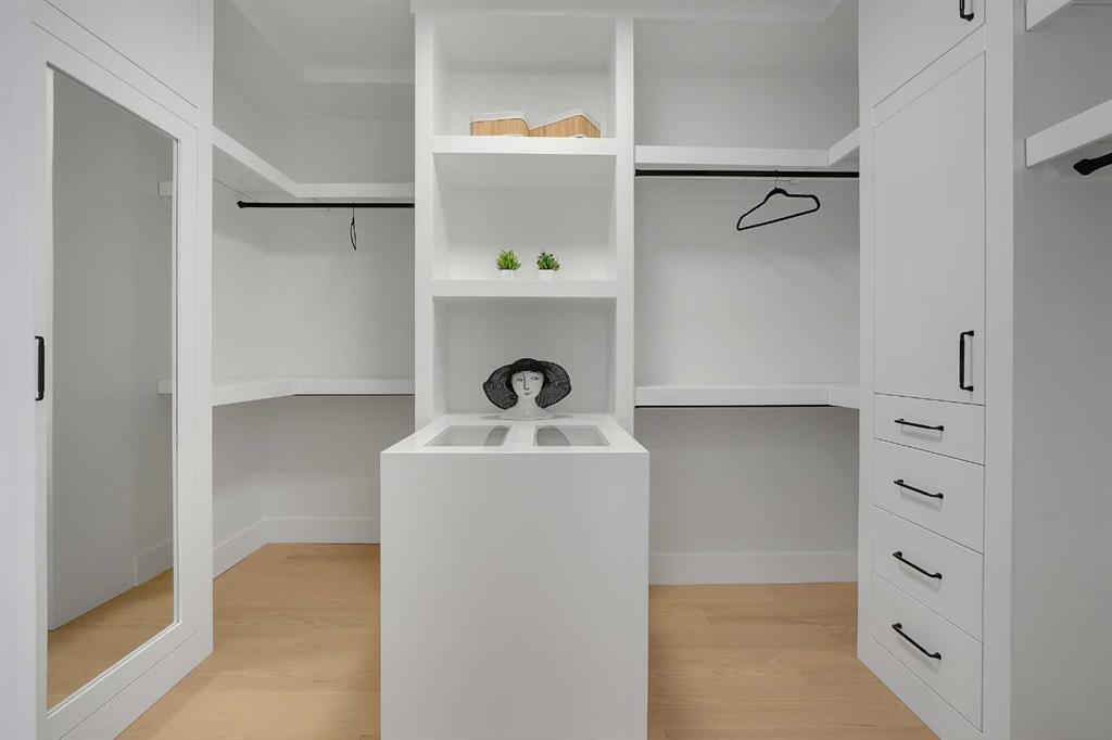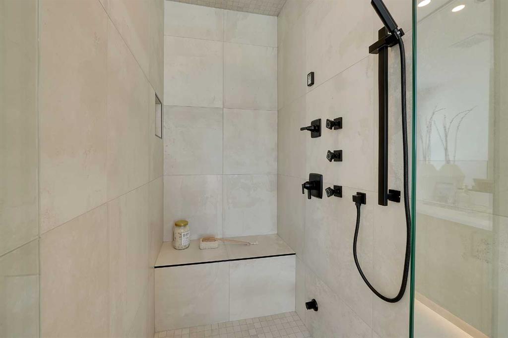 Upstairs, luxury continues with 9 ft ceilings and three beautifully appointed bedrooms, each offering its own walk-in closet and private en-suite. The primary retreat is a masterpiece—featuring vaulted ceilings, a stunning 5-piece spa en-suite with steam shower and soaker tub, a large custom walk-in closet with island, and a rare in-room wet bar for the ultimate private sanctuary. Convenient upper laundry completes this exceptional level.