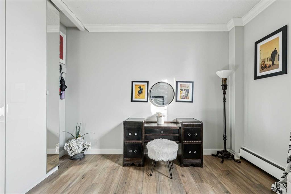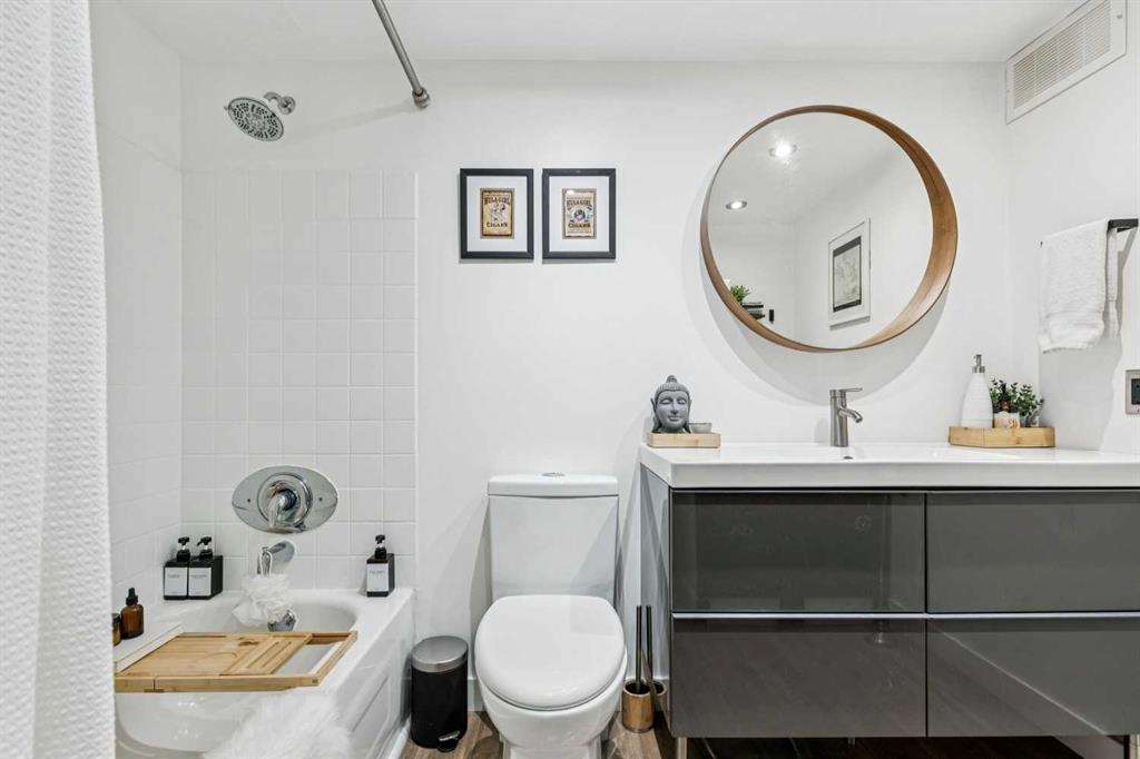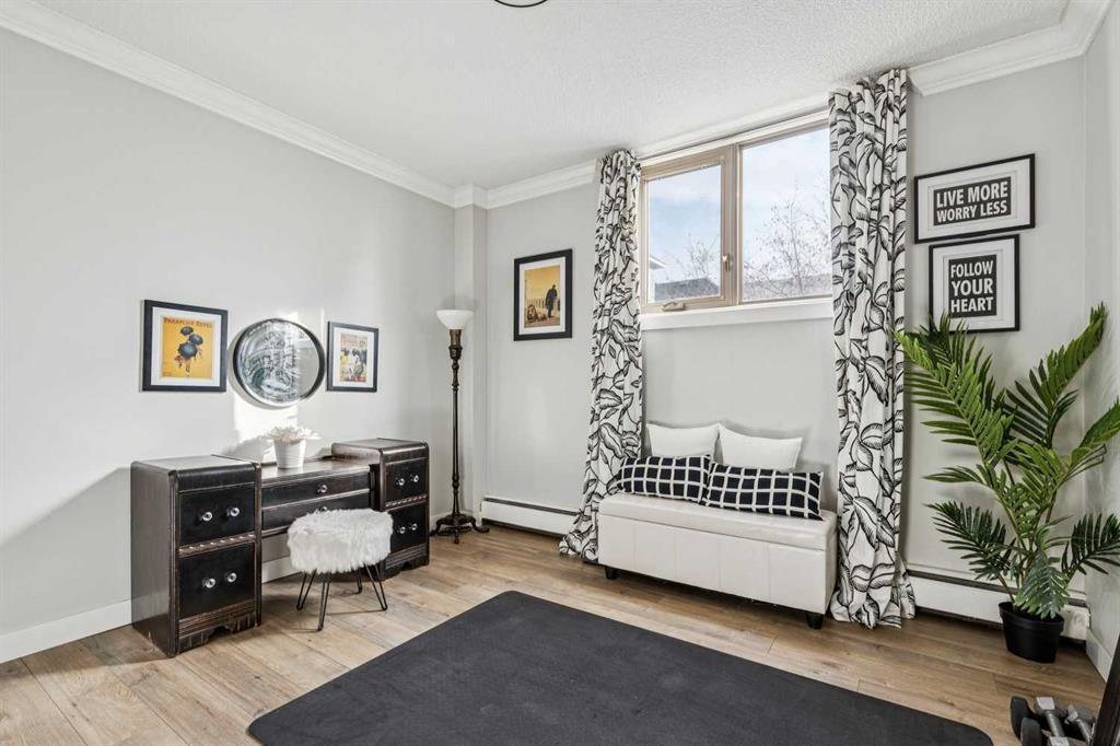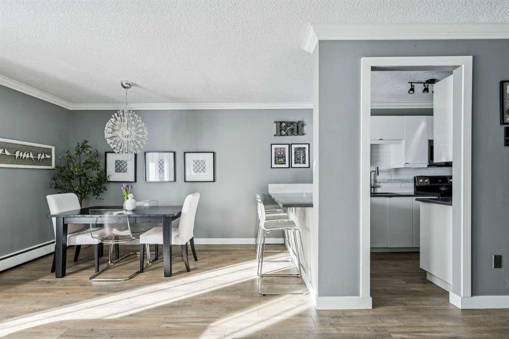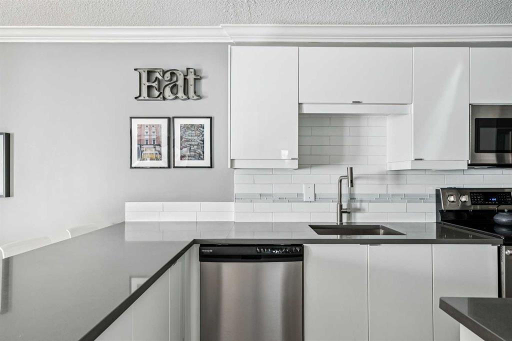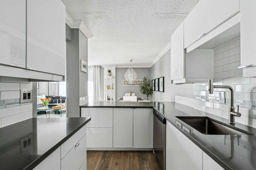 Welcome to the Beltline lifestyle. This bright and updated 2-bedroom, 1-bath condo delivers the best of inner-city living at a price that's hard to beat. Recently renovated from top to bottom, this 854 sq ft unit feels fresh and move-in ready. The kitchen is a real standout with sleek white cabinetry, dark countertops, stainless steel appliances, a subway tile backsplash, and more counter space than you'd expect from a condo this size, plus an island to host. Whether you're a home cook or just like having room to spread out, you'll appreciate the thoughtful layout here. Warm vinyl plank flooring runs throughout, tying the space together with a clean, modern feel. The primary bedroom is generously sized with plenty of natural light, and the second bedroom works equally well as a guest room, home office, or both. Crown moulding adds a nice finishing touch throughout. The condo fees include heat, water and electricity(which is an added bonus) and the building itself is well managed with a strong reserve fund, plus the bonus this building has no post-tension cables and comes with secure gated parking, storage, and bike storage. And then there's the location. Steps from restaurants, coffee shops, pathways, and all the energy the Beltline has to offer. Walk to work, grab dinner on 17th, or just enjoy having everything at your doorstep. A beautiful place to call home.