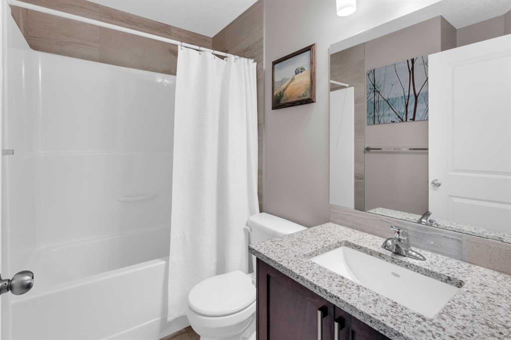 From the moment you step inside, you’ll appreciate the inviting foyer with tile flooring, leading into a bright main floor finished with stylish laminate throughout. The spacious open-concept layout begins with a generous living room that flows seamlessly into the dining area and modern kitchen — perfect for both everyday living and entertaining. The chef-inspired kitchen features quartz countertops with an eating bar, elegant cabinetry, and stainless steel appliances, creating a functional and stylish heart of the home. A convenient 2-piece powder room and direct access to your private backyard complete the main level. Upstairs, you’ll find a spacious primary suite showcasing a beautiful ensuite bathroom and a walk-in closet. Two additional well-sized bedrooms, a full 4-piece bathroom, and upper-floor laundry provide comfort and convenience for the whole family. The fully finished basement expands your living space with a large recreation room featuring laminate flooring and a stunning fireplace. This level also includes a full bathroom and offers ample space to easily add a fourth bedroom if desired. Step outside to your backyard oasis, complete with a concrete patio and low-maintenance artificial turf, ideal for relaxing or entertaining. Winter mornings are effortless with your heated 22’ x 18’ double detached garage, finished with durable epoxy floors and long enough to accommodate a full-sized truck. Ideally located close to schools, shopping, parks, playgrounds, and all amenities, this home offers exceptional value in a family-friendly community. Homes like this rarely come available — don’t miss your opportunity. Book your showing today!