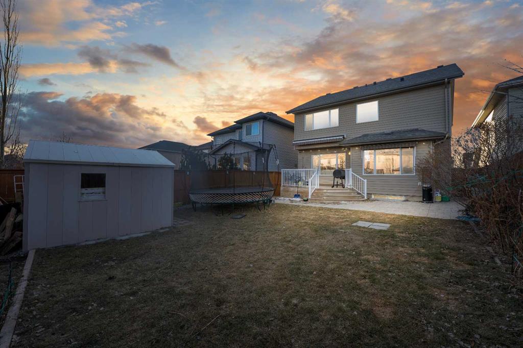Set on a generously sized lot, the backyard features a patio area and storage shed, offering ample space for outdoor enjoyment, relaxation, and entertaining.
