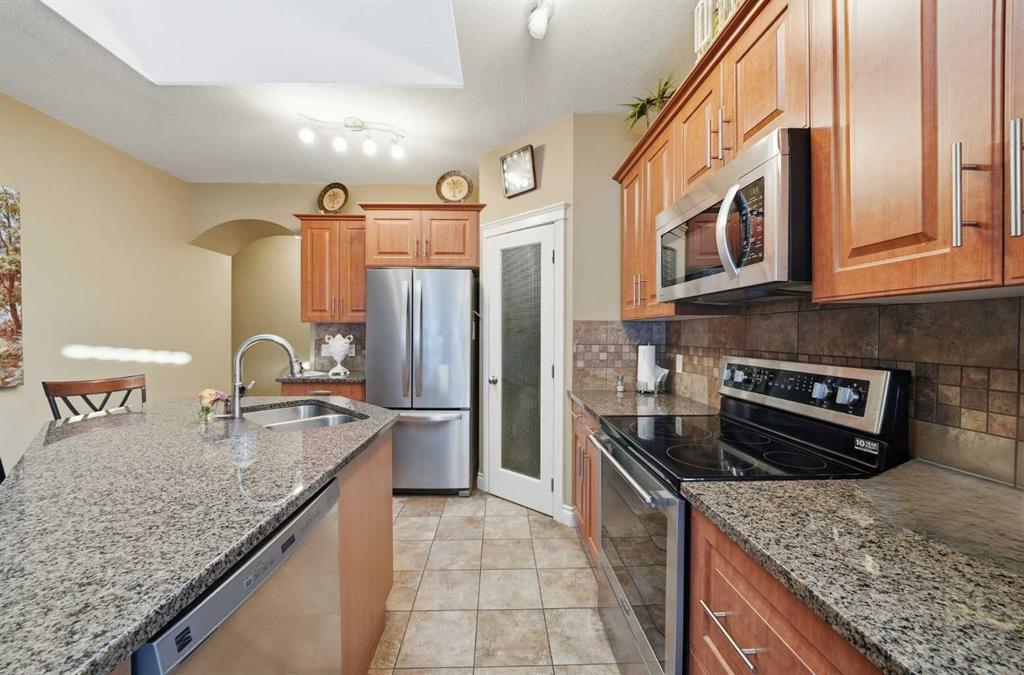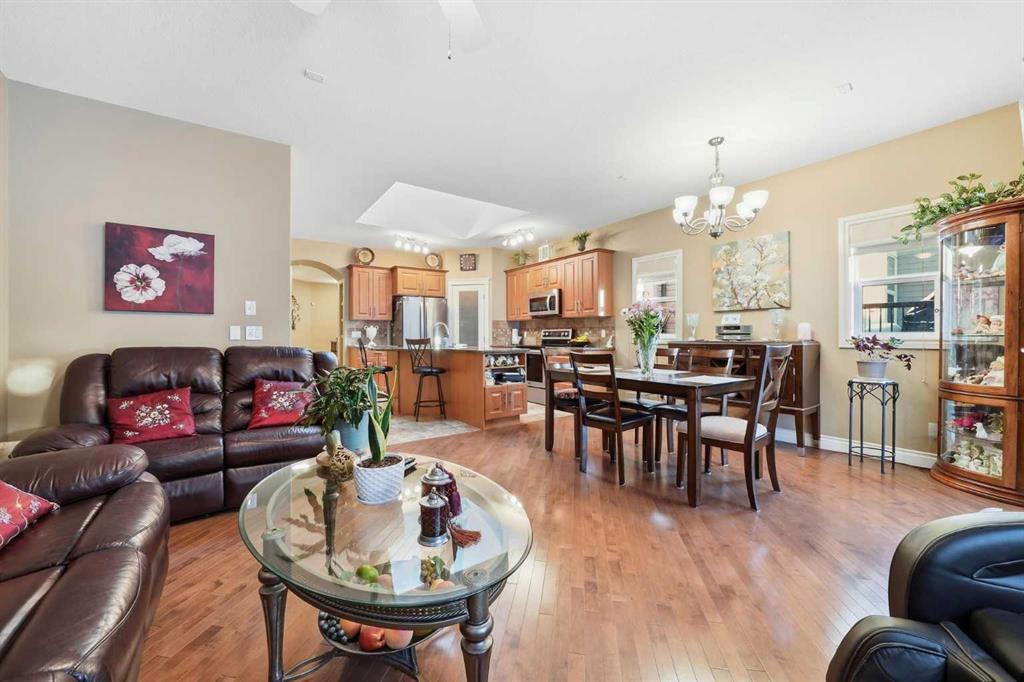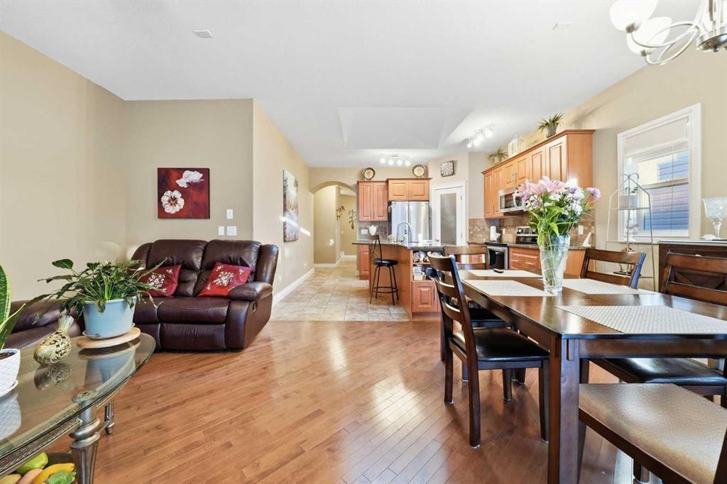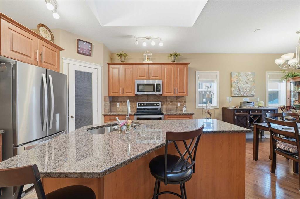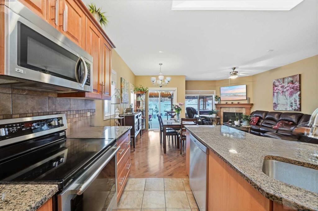 OPEN HOUSE today Saturday Feb 21st and Sunday Feb 22nd. 2-4:30 pm. Welcome to 144 Reunion Close NW, Rarely on the market you find a home in this shape. COME TO MY OPEN HOUSE THIS WEEKEND Saturday and Sunday Feb 21st and Feb 22nd 1-4 pm. This is a beautifully maintained bungalow offering 1,275 sqft above grade plus a fully developed 1,016 sqft basement level, in the heart of Reunion. Step inside to a welcoming foyer with a convenient closet for outerwear and direct access to the double attached garage, making winter mornings effortless. The open-concept main floor is bright and inviting, featuring a cozy gas fireplace in the living room, a cozy dining area, and sliding patio doors that lead to the expansive covered deck overlooking a beautifully landscaped backyard with raised garden beds and mature trees. The kitchen is both stylish and functional, complete with a granite island with breakfast bar seating, stainless steel appliances, a large corner pantry, and tile flooring. The main level features One bedroom and a den or guest bedroom, including a generous primary suite with a walk-in closet and private 3piece en-suite, along with main floor laundry and a 2piece guest bathroom. The fully developed basement adds exceptional living space with a large family room finished with a second fireplace, two additional good-sized bedrooms, a full 4piece bathroom, and an office plus plenty of storage. Additional features include, great neighbors, comfort, privacy, and outstanding value in a family-friendly community. This is a must-see property! Don't miss out and come view today!