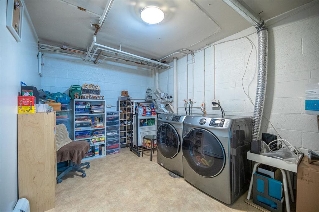 Upstairs, you’ll find two oversized bedrooms and a 4-piece bathroom, complemented by a convenient 2-piece powder room on the main floor. The home features a bright interior throughout, a large living room, and thoughtful updates including new windows and a new front door (2022).