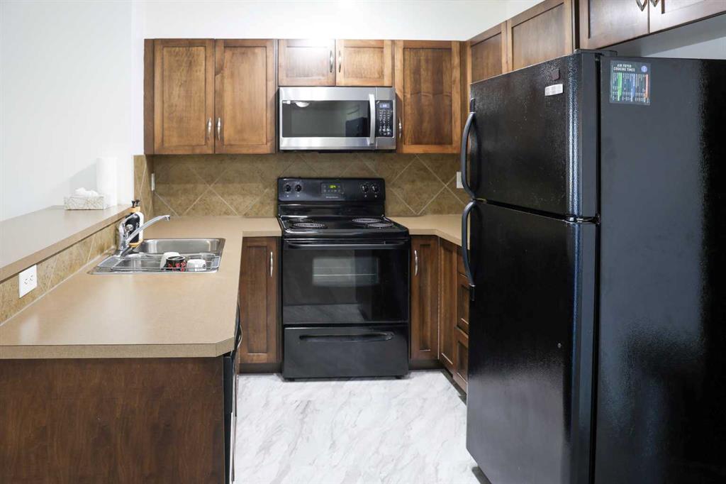 Welcome to this well maintained 2-bedroom, 2-bathroom unit that is conveniently located within walking distance to various amenities. The apartment is situated near a pond and walking paths, providing easy access to outdoor recreational activities. Additionally, it is close to shops, VIVO fitness centre, a library, theatres, and restaurants, offering residents a wide range of entertainment and dining options. The interior of the unit features laminate & luxury vinyl tile floor. The living room and dining area are designed in an open-plan concept, which enhances the feeling of spaciousness and allows for flexible furniture arrangements. A gas fireplace serves as a cozy focal point in the living room. The apartment offers a balcony with sliding glass doors, providing an opportunity to enjoy outdoor space and a view of lake. The balcony is equipped with a natural gas hook-up, allowing for convenient bbq without the need for a propane tank. The Master Suite in the apartment includes a walk-in closet and a 3-piece ensuite bathroom, providing a private and comfortable space. The second bedroom can be utilized as an office, or as a bedroom. Computer hook-ups are available in the front entry, making it easy to set up a home office area. For added convenience, the unit includes in-suite laundry facilities, allowing residents to do their laundry conveniently within their own living space. Furthermore, the property offers a titled, underground parkade where residents can park their vehicle. The parkade also provides extra storage space adjacent to the parking spot, allowing for organized storage of belongings. Overall, this 2-bedroom, 2-bathroom apartment offers a comfortable and convenient living experience with only minutes to bus stops, shopping, schools, restaurants, movies, and recreational centre.