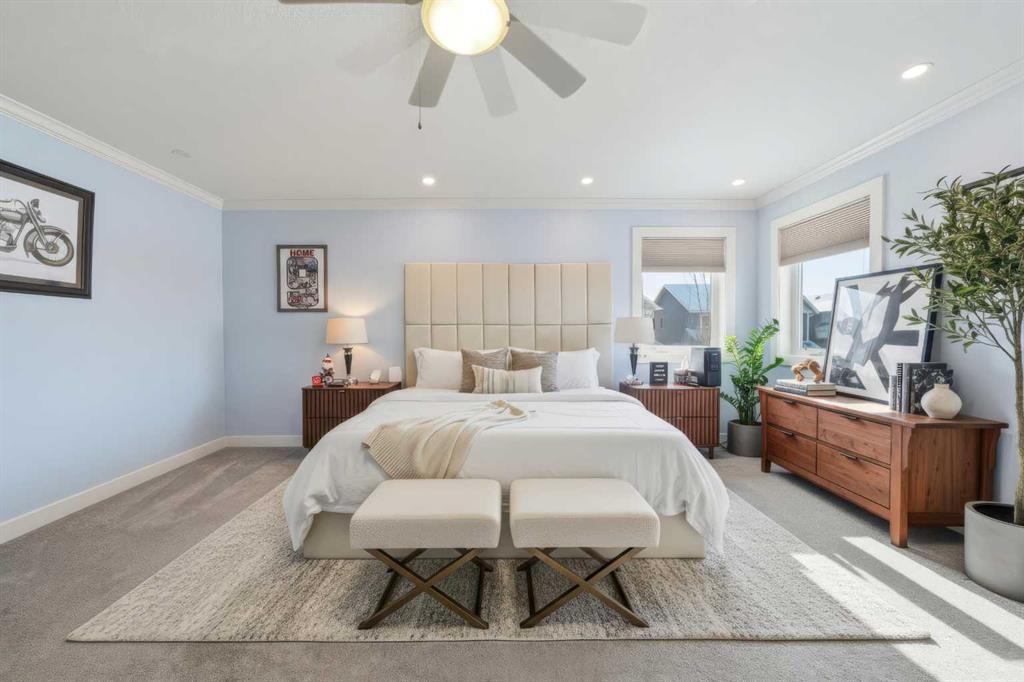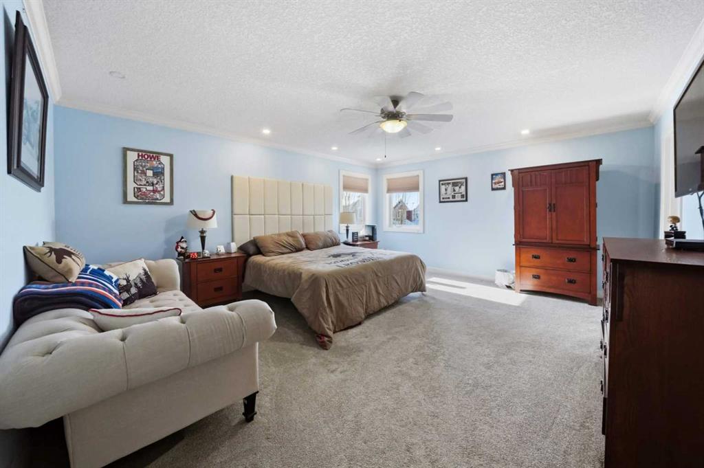 Welcome to 247 Kingston Way SE — an exceptional executive home situated on a massive corner lot in the prestigious community of Kings Heights. Offering over 2,600 sq ft above grade plus a professionally developed basement, this rare 5-bedroom property combines luxury, space, and thoughtful upgrades with outstanding functionality for growing families. From the moment you step inside, you are greeted by soaring 9’ ceilings, expansive windows, and an abundance of natural light that fills the main level. The open-concept design is anchored by a stunning gourmet kitchen featuring granite countertops, high-end cabinetry, a convenient walk-through pantry, a huge island, and new stainless steel appliances including fridge, dishwasher, and stove. The kitchen flows seamlessly into the spacious dining area and inviting living room, highlighted by a cozy fireplace and custom built-ins — creating the perfect space for both everyday living and entertaining. A main floor den/home office offers privacy for remote work, while the bright sunroom provides additional flexible living space ideal for relaxing or hosting guests. Upstairs, the impressive primary retreat offers generous proportions, a walk-in closet with direct access to the ensuite, and a luxurious 5-piece ensuite designed for comfort and relaxation. Two additional large bedrooms share another 5-piece bath, plus laundry room, ensuring no one compromises on space. A vaulted bonus room with a second fireplace completes the upper level — perfect for movie nights or a quiet family retreat. The professionally developed basement expands your living space even further with two additional bedrooms, a full bathroom, a spacious recreation area, and ample storage. Significant recent upgrades include a new furnace, new 50-gallon hot water tank, new air conditioning unit (2023), new garage doors, and new carpet — providing peace of mind and modern comfort for years to come. The oversized triple attached heated garage is a true standout feature, offering incredible storage and functionality, including a unique rear overhead door providing direct access to the backyard. Outside, the west-facing yard is fully landscaped and designed for low maintenance, complete with a private deck, RV parking, storage shed, garden boxes and full fencing — ideal for entertaining, relaxing, or accommodating recreational vehicles. Located within walking distance to parks, scenic pathways, water features, new schools, shopping, and with convenient access out of town, this home offers executive living in one of Airdrie’s most desirable communities. A rare opportunity to own a move-in-ready estate property that delivers luxury, space, and lifestyle — all in one remarkable address.
