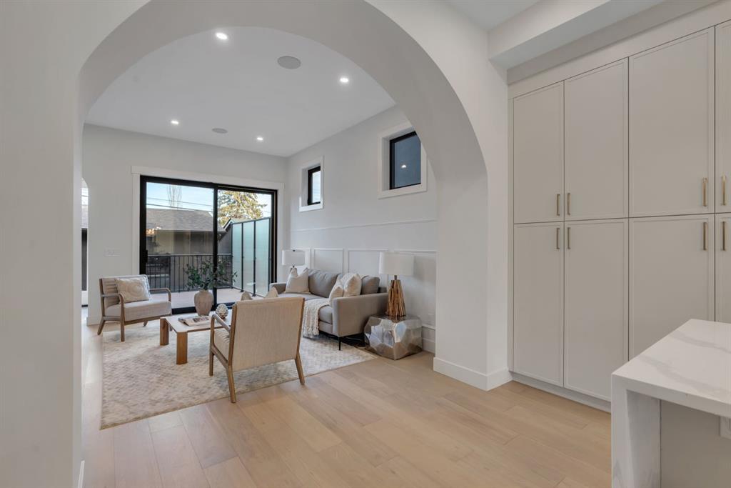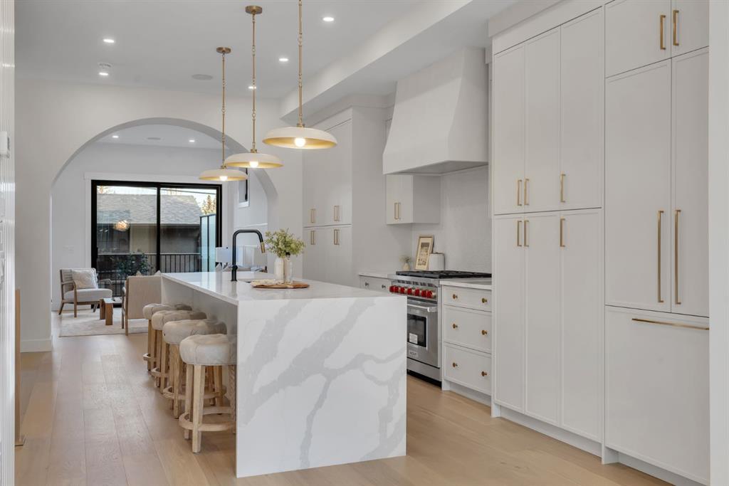The builder is offering an extended warranty with the standard first year coverage extended to two full years, providing enhanced peace of mind and added long term protection for the new homeowner. This exceptional brick residence by Jerry Homes is ideally situated near Marda Loop in one of Calgary’s most desirable inner city neighbourhoods and offers a refined blend of timeless architecture and modern luxury. The thoughtfully designed main level features soaring 10 foot ceilings, expansive windows that flood the space with natural light, an elegant dining area with detailed wall treatments, and a stunning chef inspired kitchen anchored by an oversized island, quartz countertops, custom cabinetry, premium built in Wolf and Dacor appliances, a concealed walk in pantry, and sophisticated designer finishes throughout. A beautifully defined great room centers around a custom multi tier gas fireplace creating an inviting yet elevated atmosphere, while a functional mudroom with ample storage adds everyday convenience. Upstairs, 9 foot ceilings frame a luxurious primary retreat complete with dual walk in closets and a spa like five piece ensuite finished in full height designer tile and offering in floor heating, a steam shower rough in, and a deep soaker tub. Two additional bedrooms, a well appointed bathroom, and a spacious dedicated laundry room complete the upper level. The fully developed basement expands the living space with a large recreation room, wet bar, fourth bedroom, and a full bathroom along with in floor heating rough in for added comfort. Additional highlights include rough ins for air conditioning, built in ceiling speakers, a security system, and exterior cameras. Surrounded by top rated schools, parks, and the vibrant shops and restaurants of Marda Loop, this home delivers elevated inner city living with exceptional craftsmanship and everyday practicality.