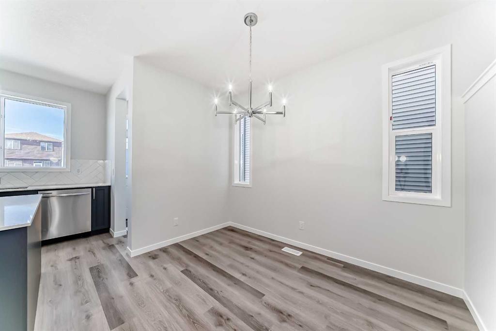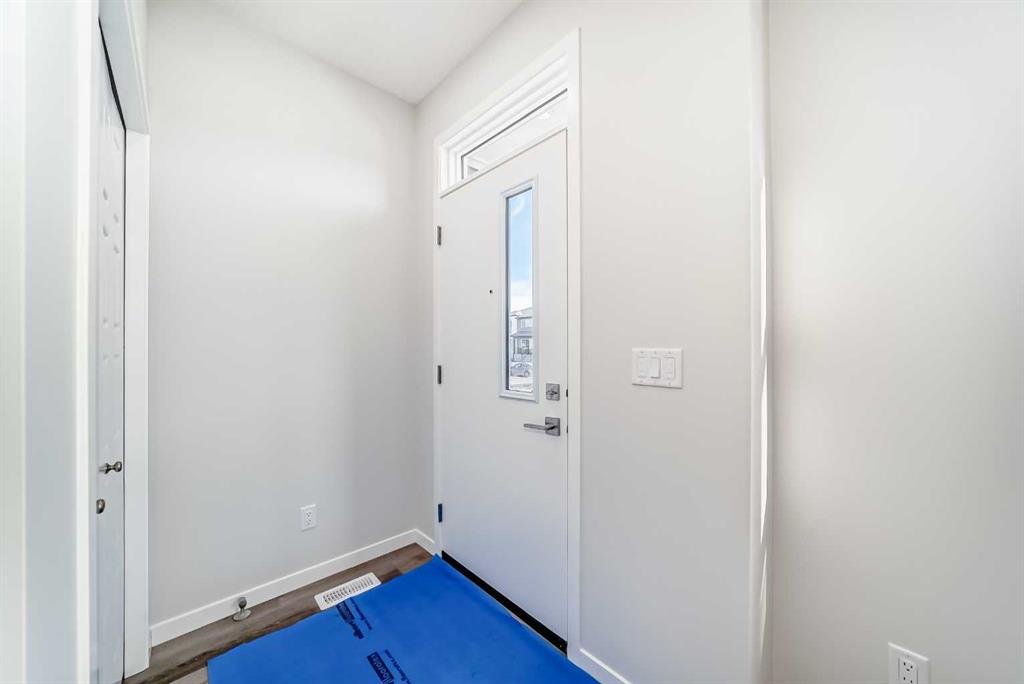 Welcome to this stunning brand new semi-detached home in Calgary, offering 1,589 sq ft of beautifully designed living space. Featuring 3 bedrooms and 2.5 bathrooms, this home combines modern style with practical functionality. The bright open-concept main floor showcases 9-ft ceilings and large windows that fill the space with natural light. The contemporary kitchen is a true highlight, complete with elegant quartz countertops, sleek cabinetry, and ample prep space—perfect for cooking and entertaining. The dining and living areas flow seamlessly together, creating an inviting atmosphere for family and guests. Upstairs, you’ll find three spacious bedrooms, including a generous primary suite with a walk-in closet and private ensuite. Two additional bedrooms, a full bathroom, and convenient upper-level laundry complete the upper floor. The undeveloped basement with a separate side entrance provides excellent potential for future development or a secondary suite (subject to city approval), offering flexibility for growing families or added investment value.
