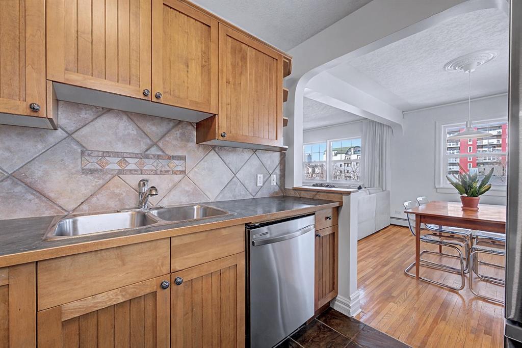 Experience downtown living in the heart of it all. This bright corner end unit stands out with windows on both sides, filling the space with natural light throughout the day. As you enter the unit to the left, the open-concept layout creates a seamless flow between the living area, dining, and kitchen, making it feel spacious and comfortable from the moment you walk in. The kitchen is equipped with NEW APPLIANCES and offers plenty of cabinet and prep space. To the right, you will find a beautiful 4-piece bathroom and two generously sized bedrooms, along with the convenience of IN-UNIT WASHER and DRYER. A rare find for a downtown property, this unit also includes EXTRA STORAGE in the basement and a dedicated PARKING STALL, adding valuable space and everyday convenience. Residents can enjoy a lovely courtyard and a shared patio area complete with a barbecue, perfect for relaxing or entertaining outdoors. Located in the heart of downtown, you are steps from restaurants, cafés, and nightlife, minutes to GoodLife Fitness, and just 10 minutes to the Saddledome for concerts, Flames games, and major events.