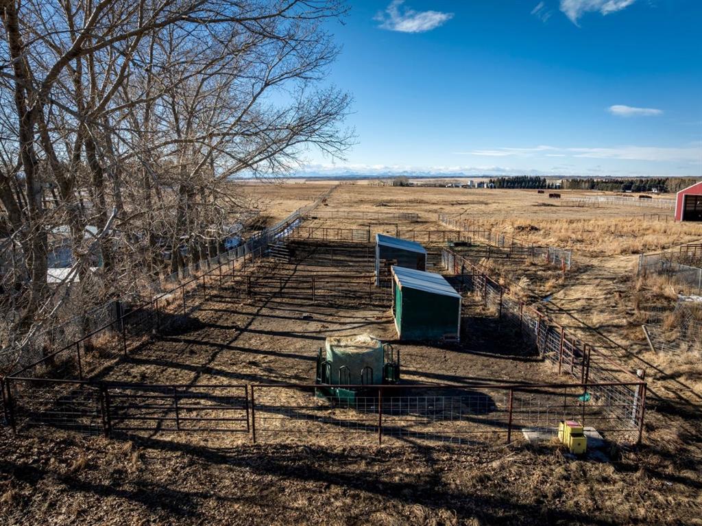 Proud, Long-Time Owners present this charming CUSTOM BUNGALOW + HEATED SHOP + 2nd BARN & on 19.89 Acres! Located 10 mins WEST from Airdrie & boasting UNOBSTRUCTED COUNTRY VIEWS. A RARE FIND with this HOBBY FARM tucked into nature with 360-degree views & the most gorgeous sunsets on a daily basis. This property boasts an Oversized detached HEATED SHOP (40’ x 72’ / 3-12’ Shop Doors / 14’ Tall), Gorgeous DECK with shelter belt of MATURE TREES & an impressive floor plan for the growing family. Eye catching curb appeal as you approach with stucco/stone exterior and 100 year upgraded roof! Nearly 3,200 sq ft of living space in this sprawling 4 bedroom (3 beds up), 3 bathrooms + flex room. Tons of windows through both the main and lower levels ensure plenty of sunlight spreads throughout these open plans. Greeted with a spacious living room with a feature gas fireplace & expanding into your newer kitchen/dining space with access to your private oasis. Highly upgraded chef’s kitchen with quartz counters, stainless appliances & ample prep space or hosting guests. Steps away is the primary retreat with plenty of room for a full bedroom set, full en suite & storage. 2 more generous bedrooms and a second bathroom is ideal for the everyday hustle and bustle. A ONE-OF-A-KIND SUNSHINE ROOM with an entire wall of built-in cabinetry is sure to impress! This home comes equipped with a central vac system, UPDATED; furnace, HWT, windows, shingles, electrical, plumbing, kitchen, bathrooms, LVP flooring (with areas having IN-FLOOR-HEAT) are just a few more noteworthy features. Partially developed basement is host to your 4th bedroom, a wonderful rec room with a flex room (home gym/theatre), another full bathroom & lots of storage space/workshop. A second 72’ x 40’ HAY SHED is perfect for a family with plenty of toys to store away from the elements. Multiple shelters, water hydrant, cross fencing, storage sheds, 3 paddocks & more for those horse/farm animal enthusiasts! Tons of trees in your very own secluded backyard. Picturesque views in all directions featuring grasslands, abundant wildlife and truly a very tranquil setting. Zoned as Agricultural, this property is much more business friendly than the average country residential acreage property. Only a short drive to all amenities & schools. Book your private viewing today to truly appreciate every piece of this property.