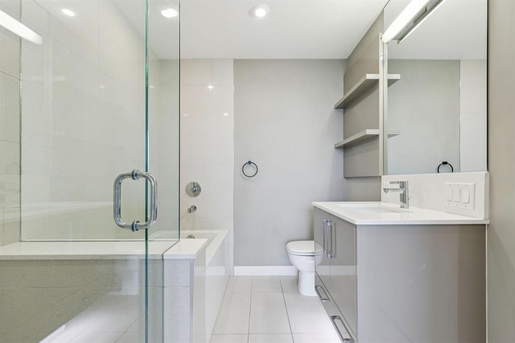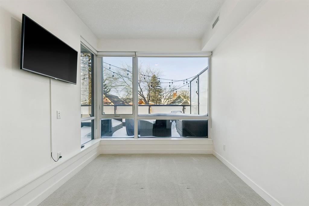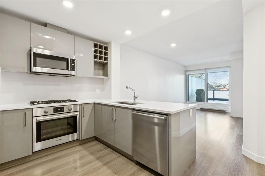Elevate your urban lifestyle in this sophisticated second-floor sanctuary, tucked away on the quiet west side of the prestigious, concrete-built Kensington building. While many one-bedroom condos feel confined, this residence breaks the mold with an expansive, oversized patio. This massive outdoor footprint is a rare architectural feature reserved for only a select few units in the building and acts as a seamless extension of your living space, perfect for hosting summer dinner parties under the stars or creating your own lush garden oasis in the heart of the city. Inside, the condo is a masterclass in refined style, anchored by a chef’s kitchen that punches far above its weight class. It is fully equipped with high-end Fisher & Paykel stainless steel gas cooktop & oven + Bosch fridge and dishwasher, plus a custom-integrated wine rack, all framed by elegant quartz countertops and a peninsula with seating for four. Practicality is a priority here with the inclusion of convenient in-suite laundry, an in-unit storage room, and a separate assigned storage locker for all your seasonal gear. The primary bedroom serves as a sun-drenched escape, featuring large windows and a walk-through closet that leads directly into the spa-inspired bathroom. This retreat offers a deep soaker tub, a separate glass-enclosed shower, and a sleek vanity with quartz countertops. Beyond the unit walls, the building offers a level of convenience rarely seen, including central air conditioning, titled underground parking, a dedicated car wash bay, and secure bike storage. Whether you are walking through Riley Park, commuting via the nearby Sunnyside LRT, or exploring the boutique shops and cafes of Kensington Village, this pet friendly residence offers the perfect balance of a serene retreat and vibrant urban vitality.