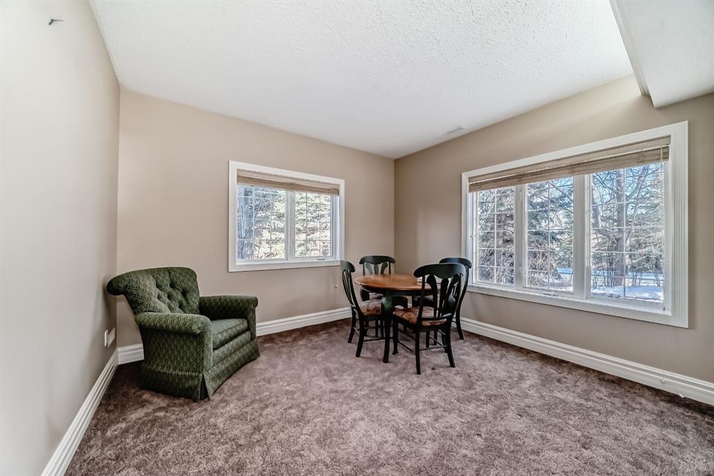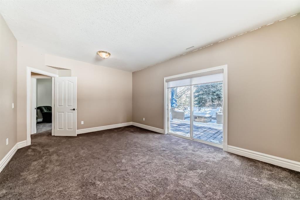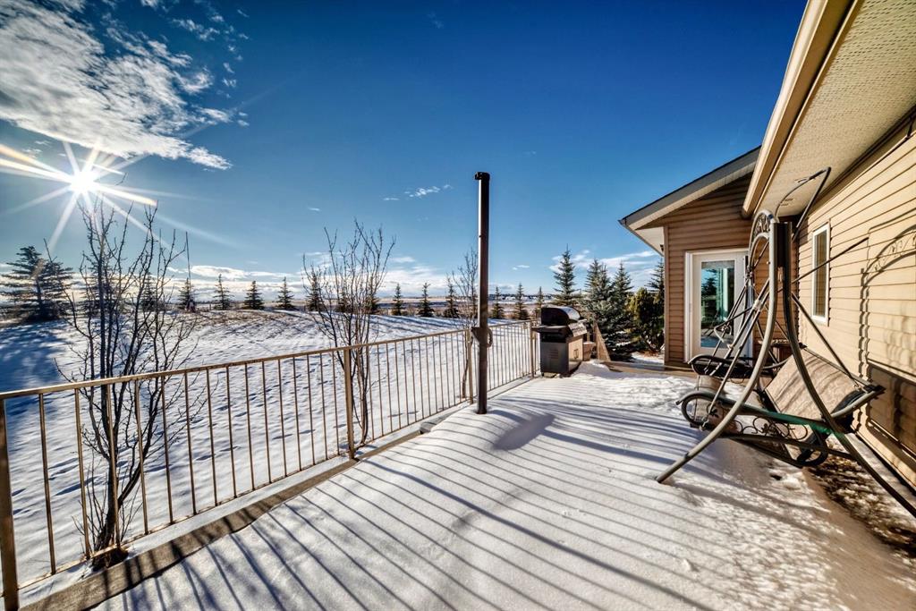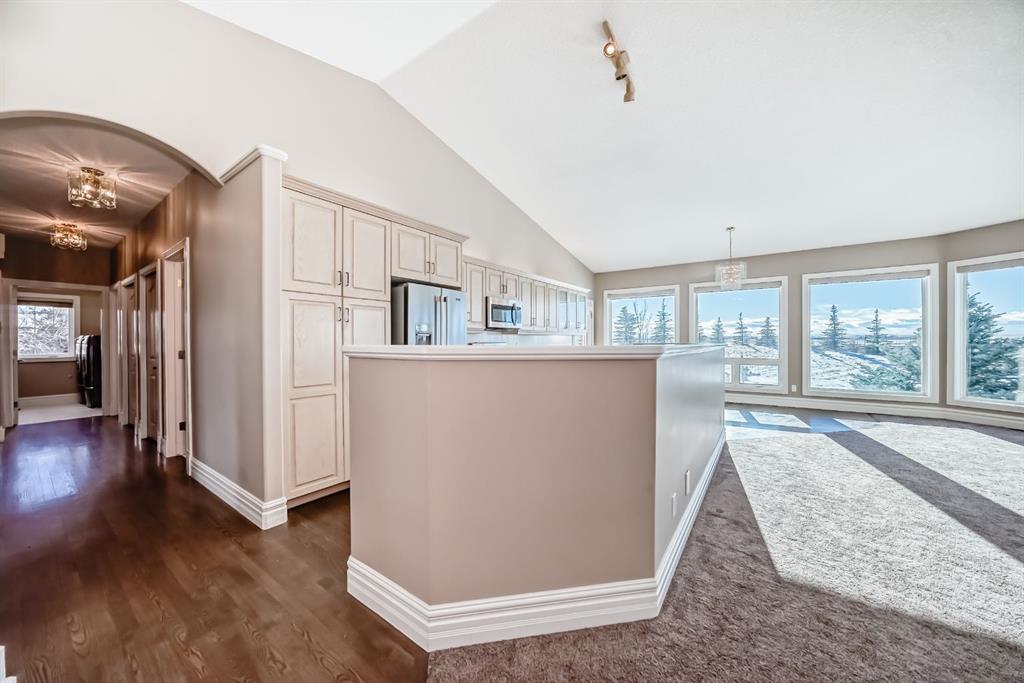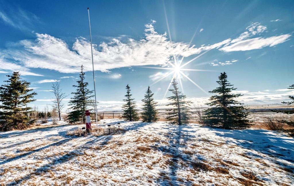 Car or hobby enthusiasts will appreciate the attached triple oversized garage with 14-foot ceilings to accommodate a lift, including one 11-foot high door. This heated & drywalled space also features upper storage, a closet, man door access, & rough-in plumbing for a sink. In addition, a newer 2nd detached triple garage is powered, heated, & drywalled. Surrounded by mature trees, this private property feels like your own personal park. A picturesque gazebo sits beside the pond, which transforms into a skating rink in winter, complete with power & water access. On the back side of the home, enjoy cozy evenings gathered around the fire pit area. The yard offers both mountain & glimpses of downtown Calgary in the distance—an incredible backdrop for everyday living.