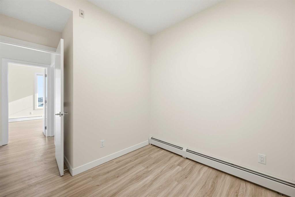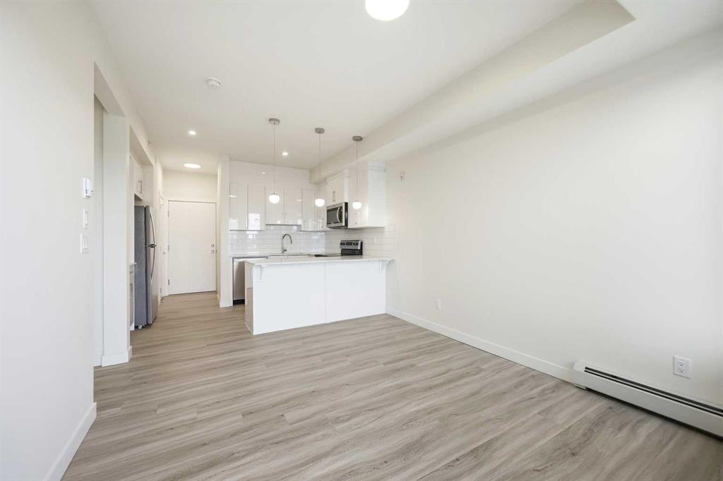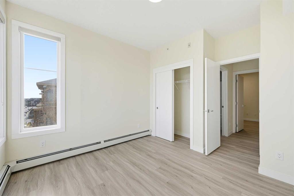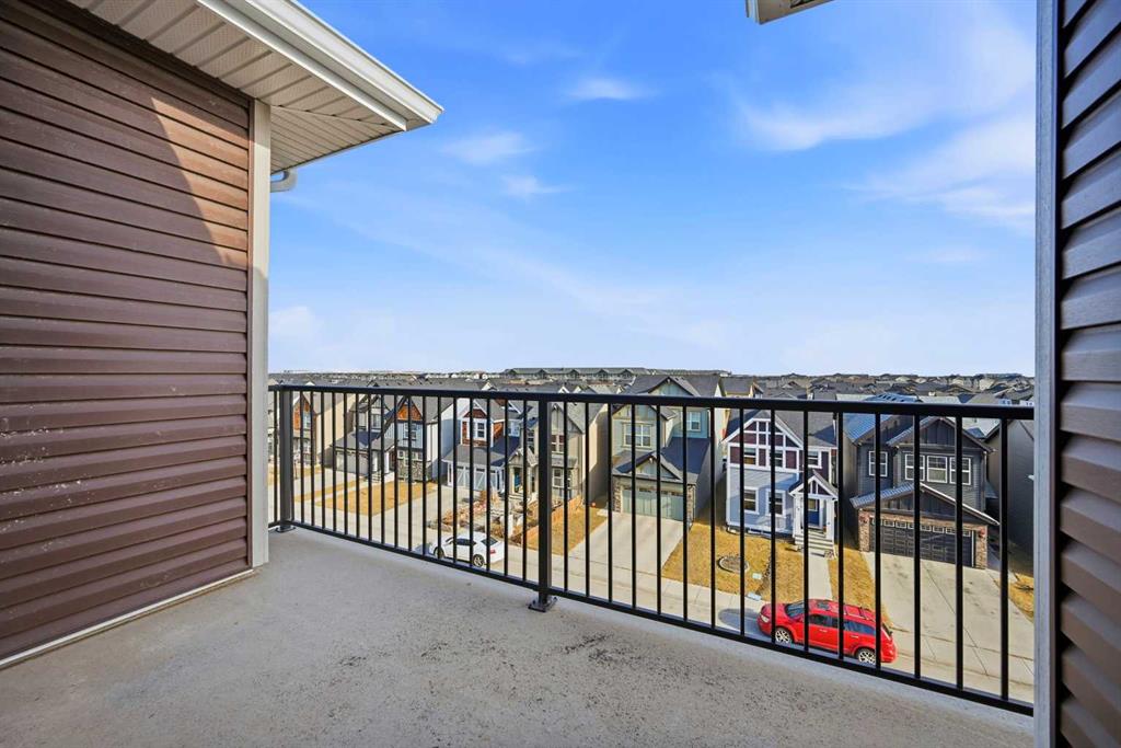 TOP FLOOR/CORNER UNIT/ BEAUTIFUL VIEWS FROM UNIT/2 BEDROOM/1 BATH/BALCONY. Discover modern living in this brand-new, never-occupied 2-bedroom, 1-bathroom condominium in the highly desirable community of Skyview Ranch NE Calgary Offering 656 of living space (Included Balcony) & immediate possession, this beautifully finished unit combines style, functionality, and convenience in one exceptional package. Key location features- WALKING DISTANCE TO SCHOOL, SHOPPING, PARK & more. Step inside to find a bright and airy open layout enhanced by 9-foot ceilings and oversized windows that allow natural light to pour in. The contemporary design is highlighted by wide-plank luxury vinyl flooring and elegant quartz surfaces throughout, creating a clean and upscale aesthetic. The kitchen is thoughtfully upgraded with stainless steel appliances, quartz countertops, soft-close cabinets, a generous PANTRY, and a convenient BREAKFAST ISLAND perfect for dining, meal prep, or casual entertaining. The kitchen flows effortlessly into the dining and living areas, providing a comfortable and welcoming space for both daily living and hosting guests. Two well-sized bedrooms offer flexibility for a home office, guest room, or roommate setup. The stylish 4-piece bathroom features modern finishes and quartz counters for a polished look. Additional features include in-suite laundry and upgraded window coverings for added comfort and privacy. Enjoy outdoor relaxation on the spacious private balcony complete with a gas line for BBQs—ideal for summer evenings. This unit also includes TITLED UNDERGROUND PARKING, a titled storage locker, and secure bike storage for added convenience. Located in a newly built complex, this property offers low-maintenance living close to shopping, schools, transit, major roadways including Stoney Trail, and Calgary International AIRPORT. Perfect for first-time buyers, young professionals, downsizers, or investors looking for a turnkey opportunity in a growing neighborhood. Move in right away or choose a flexible possession timeline to suit your needs. An excellent opportunity to own in one of Calgary’s most dynamic communities. Call your favorite realtor to book showings.