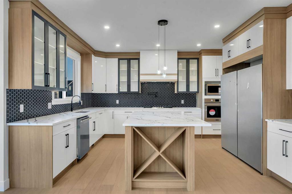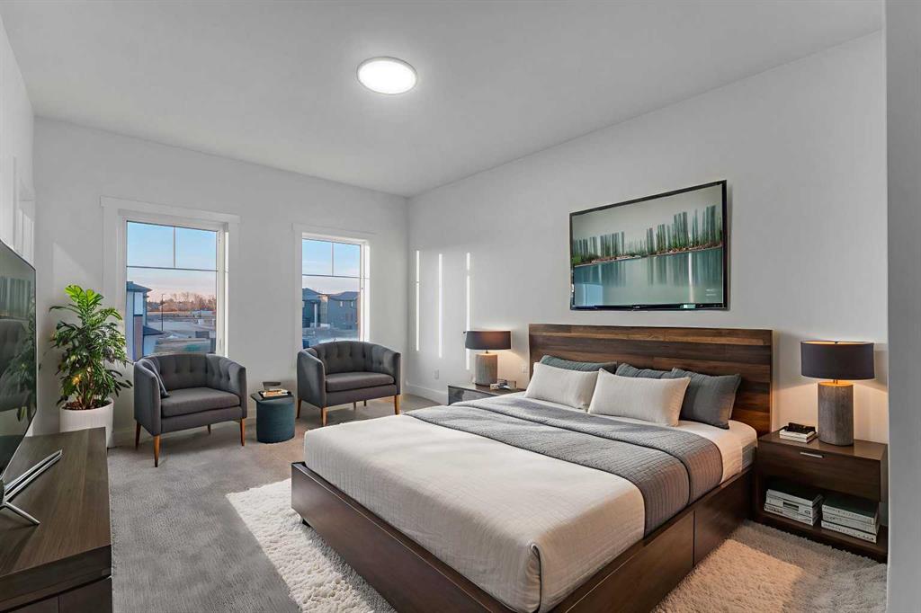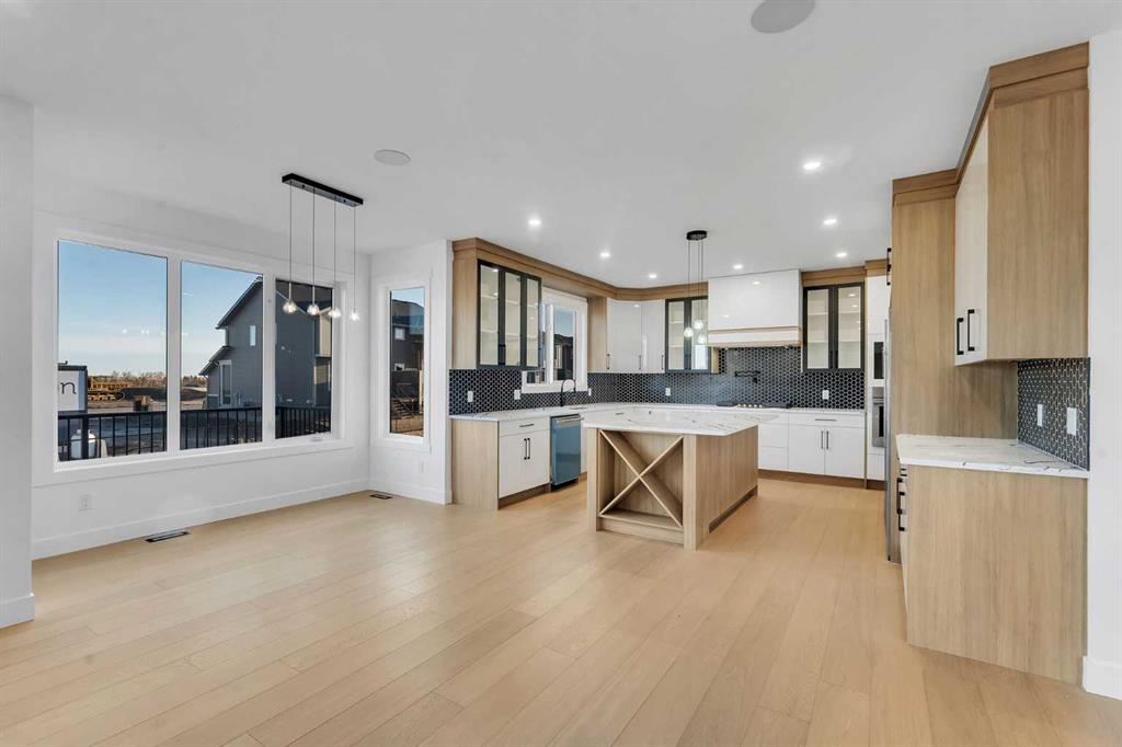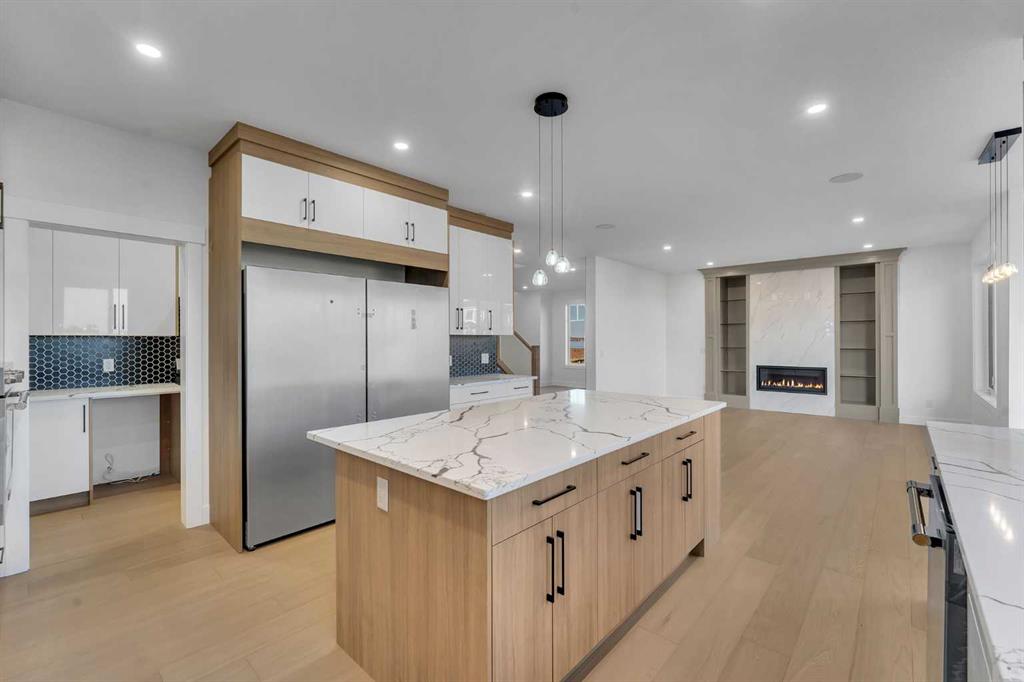 NEW BUILT!! IN SOUTH SHORES!! BACKING ONTO WALKING PATH!! NEAR CHESTERMERE LAKE!! CORNER LOT!! LEGAL SUITE BASEMENT!! SEPARATE ENTRANCE!! TRIPLE ATTACHED GARAGE!! SEPARATE LAUNDRY!! 3 MASTER BEDROOMS!! 7 BED / 5 FULL BATHS!! MAIN FLOOR MASTER!! This beautifully designed corner-lot home in South Shores offers space, luxury, and income potential — all in one. The main floor features a bright family area with gas fireplace, a stunning kitchen with huge island, built-in features, full-height cabinetry, pantry, and a spice kitchen. A rare main-floor primary bedroom with 3PC ENSUITE plus a 2PC powder room completes this level. Upstairs offers 4 SPACIOUS BEDROOMS & 3 FULL BATHS, including a grand primary suite with walk-in closet and 5PC ensuite, another bedroom with its own 4pc ensuite, and two more bedrooms sharing a convenient 5PC bath. Upper-floor laundry adds everyday convenience. The LEGAL SUITE BASEMENT WITH SEPARATE ENTRANCE includes 2 bedrooms, a full kitchen, rec area, SEPARATE LAUNDRY, and 1.5 BATH. Finished with a clean, modern colour theme throughout. AN INCREDIBLE OPPORTUNITY NEAR CHESTERMERE LAKE — LUXURY, SPACE & LEGAL SUITE ALL IN ONE HOME!!
