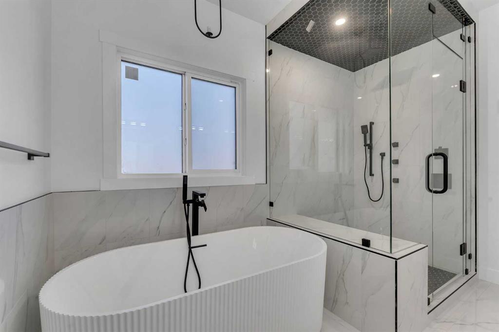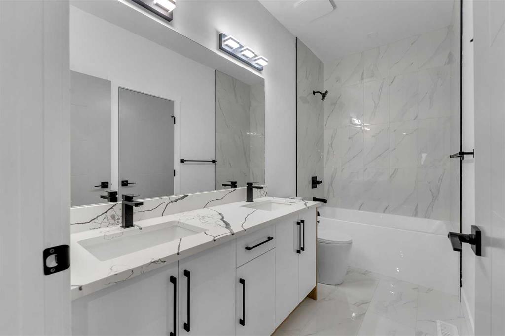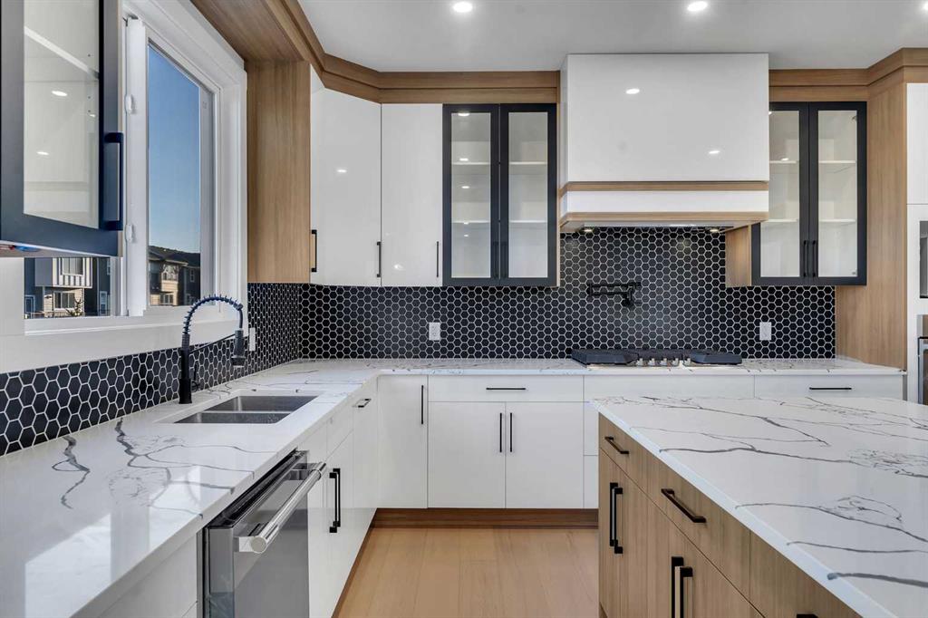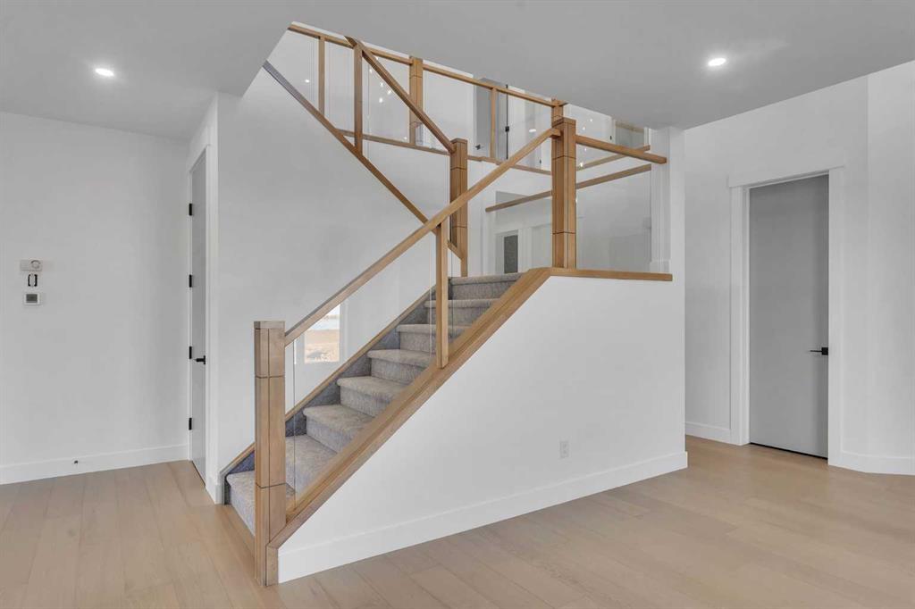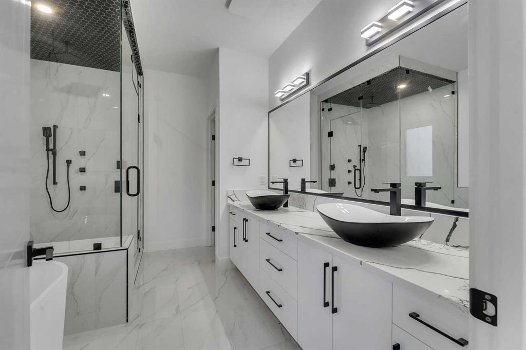 NEW BUILT!! IN SOUTH SHORES!! BACKING ONTO WALKING PATH!! NEAR CHESTERMERE LAKE!! CORNER LOT!! LEGAL SUITE BASEMENT!! SEPARATE ENTRANCE!! TRIPLE ATTACHED GARAGE!! SEPARATE LAUNDRY!! 3 MASTER BEDROOMS!! 7 BED / 5 FULL BATHS!! MAIN FLOOR MASTER!! This beautifully designed corner-lot home in South Shores offers space, luxury, and income potential — all in one. The main floor features a bright family area with gas fireplace, a stunning kitchen with huge island, built-in features, full-height cabinetry, pantry, and a spice kitchen. A rare main-floor primary bedroom with 3PC ENSUITE plus a 2PC powder room completes this level. Upstairs offers 4 SPACIOUS BEDROOMS & 3 FULL BATHS, including a grand primary suite with walk-in closet and 5PC ensuite, another bedroom with its own 4pc ensuite, and two more bedrooms sharing a convenient 5PC bath. Upper-floor laundry adds everyday convenience. The LEGAL SUITE BASEMENT WITH SEPARATE ENTRANCE includes 2 bedrooms, a full kitchen, rec area, SEPARATE LAUNDRY, and 1.5 BATH. Finished with a clean, modern colour theme throughout. AN INCREDIBLE OPPORTUNITY NEAR CHESTERMERE LAKE — LUXURY, SPACE & LEGAL SUITE ALL IN ONE HOME!!