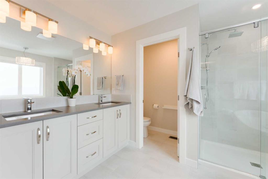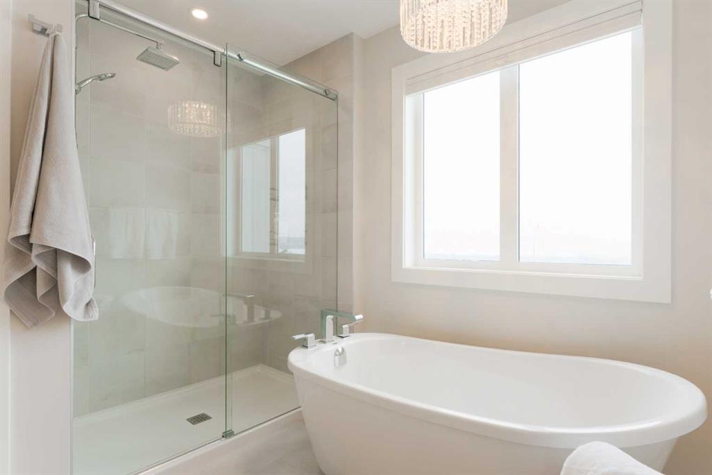 Upstairs offers three bedrooms, upper laundry, and a spacious bonus room. The primary retreat includes a walk-in closet and a spa-inspired ensuite with dual vanities, freestanding tub, walk-in shower, and private water closet.
