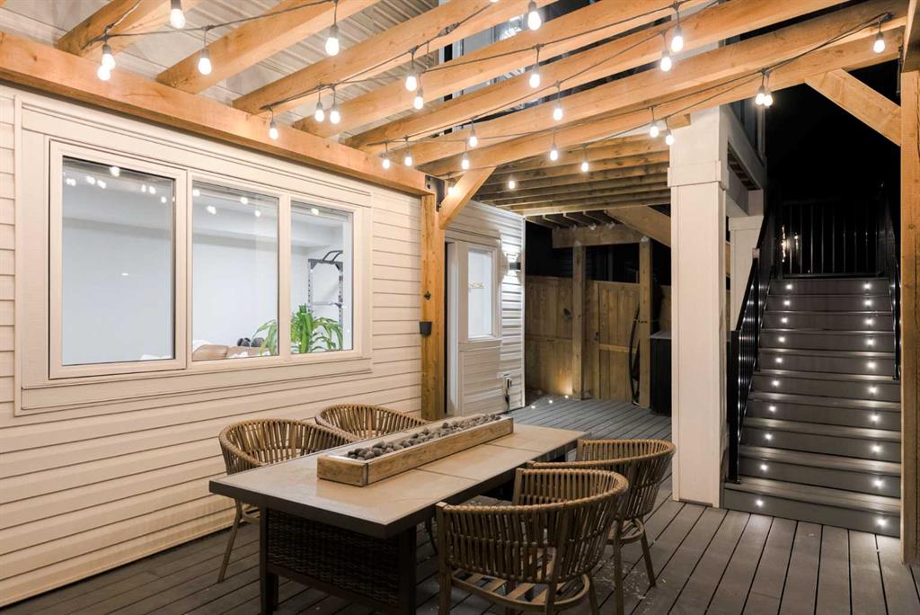 The backyard is a true standout — composite decking with integrated lighting, a modern pergola, turfed dog run, wraparound stairs, and a dedicated gas line for BBQ — all positioned to take in the valley views.
