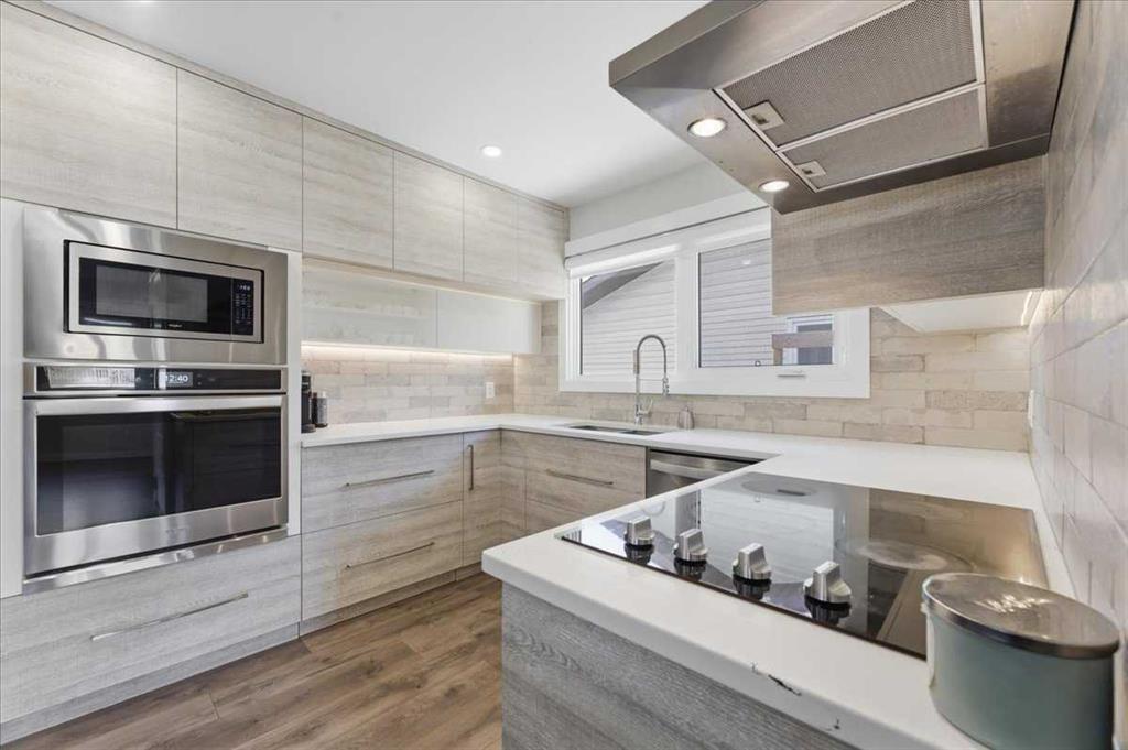 LARGE CORNER LOT | GORGEOUSLY RENOVATED | HUGE 30' X 25' WORKSHOP GARAGE | 5 TOTAL BEDROOMS | SEPARATE ENTRANCE | FINISHED BASEMENT WITH KITCHENETTE | SUNNY SOUTH YARD | STEPS TO PARK & GREEN SPACE | Beautifully renovated and thoughtfully updated, this 5 bedroom home offers over 2,170 sq ft of developed living space on a desirable corner lot in Marlborough Park. Wide streets, mature trees and a nearby park just down the road create a welcoming setting with everyday convenience. Inside, gleaming high end laminate flooring flows through an open main floor designed for connection and comfort. An oversized picture window fills the living room with natural light throughout the day while extra pot lights provide warm, even illumination in the evenings. Adjacently the dining space is perfectly positioned for family meals or can easily function as a relaxed TV area depending on your lifestyle needs. Stunningly renovated, the chef-inspired kitchen encourages gathering around the large centre island and features beautiful white quartz countertops, full-height cabinetry for streamlined storage and stainless steel appliances that blend style with function. The primary bedroom offers a calming retreat and includes its own private 2-piece ensuite. Two additional bedrooms are generously sized and share a bright 4-piece bathroom finished in a clean, timeless palette. Fully developed, the basement expands the living space with a large open recreation area that includes a kitchenette and bar setup, creating flexibility for multi-generational living, extended family or comfortable movie nights and games. Two additional bedrooms and a bathroom with dual sinks improve functionality for larger households, while the separate entrance enhances long-term versatility. Loads of outdoor space is both practical and inviting with the full-length poured concrete side yard providing low-maintenance outdoor living ideal for basketball, street hockey or easy access to the oversized double detached garage. An extremely rare MECHANICS DREAM 30' X 25' GARAGE that can also be used as a WORKSHOP or anyone with a home based business. Even more outdoor space is found in the sunny south-facing backyard that is privately fenced and offers grassy space for kids and pets to play. Marlborough Park is an amenity-rich community with schools, transit, shopping and dining all nearby, along with an active community centre offering programs and events throughout the year. This home delivers updated style, functional space and everyday convenience in an established and welcoming neighbourhood.