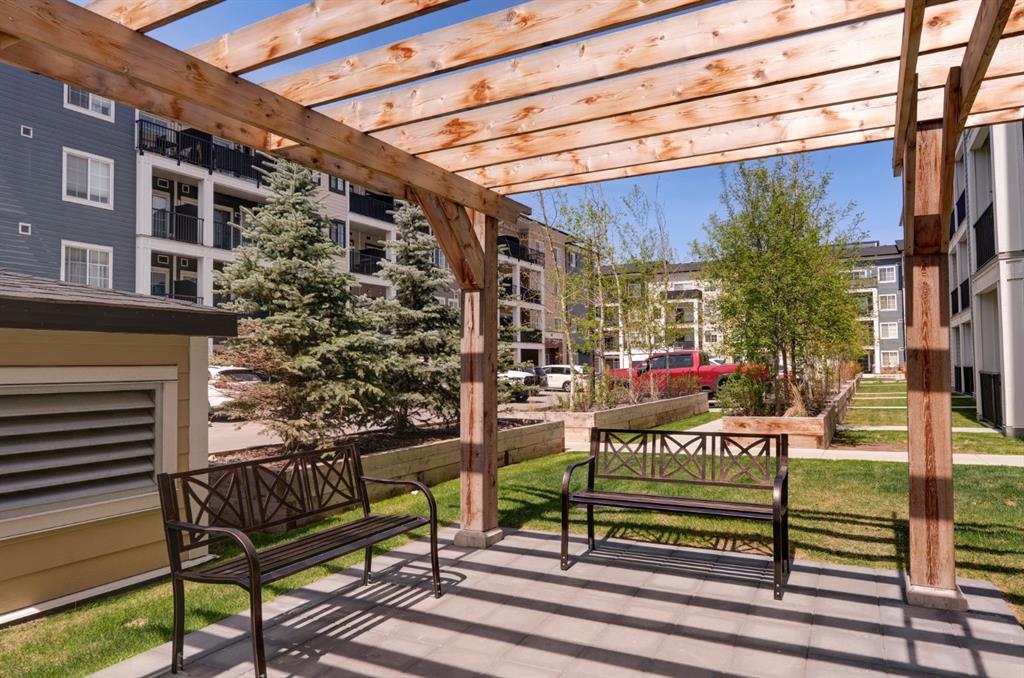 Welcome to this beautifully designed third floor condo in the sought-after community of Legacy. Boasting 752 square feet of modern, open-concept living space, this 2-bedroom, 2-bathroom unit blends style and functionality for comfortable everyday living. Step inside and be greeted by a bright and spacious front living room with oversized, south facing sliding patio doors that flood the space with natural light and lead to your private balcony the perfect spot to enjoy your morning coffee or unwind in the evening. At the heart of the home is a gorgeous kitchen that will inspire any home chef, featuring stainless steel appliances, quartz countertops, a designer tile backsplash and an abundance of cabinetry, all centred around a large central island ideal for casual dining and entertaining. The luxury vinyl plank flooring throughout the main living areas offers both durability and style. Retreat to the large primary bedroom, complete with a walkthrough closet and a private ensuite featuring a stand-up shower. The second bedroom is versatile and would make a fantastic home office, guest room, or workout space. Additional highlights include one titled parking stall, a separate storage locker and in-suite laundry for added convenience. Located in the vibrant and growing community of Legacy, you’ll enjoy quick access to a variety of nearby amenities including shops, restaurants, walking paths, playgrounds, and transit options. Families will appreciate the close proximity to All Saints High School, while commuters will benefit from easy access to major roadways. Don’t miss this opportunity to own a stunning top-floor unit in one of Calgary’s most desirable neighbourhoods.