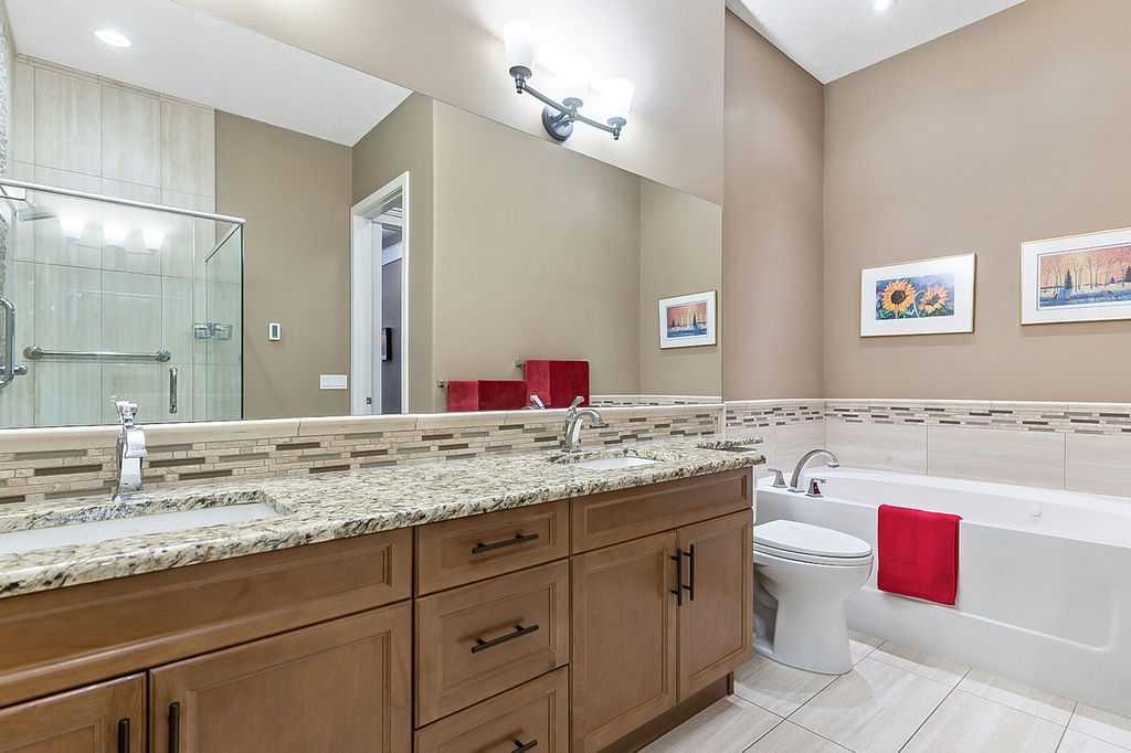 Luxury semi-detached VILLA BUNGALOW with a fully developed walkout basement, perfectly located backing onto a serene, landscaped greenspace in an exclusive and sought after 55+ community. Every detail of this residence has been thoughtfully planned to give a sophisticated blend of elegance, comfort and effortless living. The open concept design is highlighted by walls of oversized windows and transoms that rise nearly to the ceiling, flooding the home with natural light and offering gorgeous outdoor views. The kitchen is a showpiece, appointed with a premium SUB-ZERO FRIDGE, PROFESSIONAL GRADE WOLF STOVE AND BOSCH DISHWASHER. Rich granite countertops, extensive custom cabinetry and a generous walk in pantry complete this exceptional space. Step directly onto the expansive deck to enjoy peaceful mornings or elegant evenings overlooking the beautifully landscaped greenspace. The primary suite is a private sanctuary, featuring a vaulted ceiling and a spa inspired ensuite with a large sized double vanity, soaker tub and an oversized glass shower. The professionally finished walkout lower level elevates the home’s living space with a dramatic fireplace feature wall, two spacious bedrooms, a full four piece bath, in floor heating, new furnace in 2021 and garden doors that open to a covered patio — ideal for seamless indoor-outdoor living. A charming front verandah is the perfect space to relax and enjoy the peace and quiet of this exceptional community. This remarkable villa is an opportunity to own an UPSCALE RESIDENCE WITH PREMIUM FINISHES and an uncompromising lifestyle. NOT A CONDO - NO CONDO FEES (Homeowners Association).