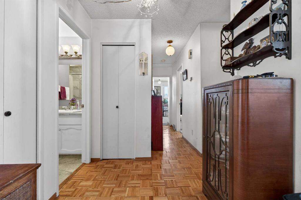 Located in the highly sought-after community of Glenbrook, this semi-detached home presents an exceptional opportunity to secure incredible value in one of Calgary’s most convenient inner-city neighbourhoods. With a stunning mountain view from the west-facing deck and a sunny backyard, the setting alone makes this property worth a closer look. Whether you’re an investor, renovator, or buyer ready to add your personal touch, this home offers solid bones, desirable features, and outstanding potential. The main floor features classic parquet flooring throughout and a spacious living room anchored by a wood-burning corner fireplace with brick surround and a charming bay window that fills the space with natural light. The dining room offers a large window for added brightness, while the kitchen includes a west-facing window and newer dishwasher. Two bedrooms and a full four-piece bath complete the level, including a primary suite with its own two-piece ensuite and sliding glass doors leading directly to the west-facing deck—perfect for soaking in those mountain views and evening sunsets. The basement offers a separate exterior entry, creating excellent potential for a future suite (subject to city approval). The lower level is already well laid out with a large living space, kitchen area with fridge, stove and sink, dining area, den, bedroom, four-piece bathroom, and laundry. Outside, the sunny west backyard features a deck, patio space, brick walkway leading to the double detached garage, and convenient alley access. Location is where this property truly shines. You’re within walking distance to Glenbrook School and the popular Glenbrook Off-Leash Area, with quick access to Mount Royal University, shopping and amenities in Signal Hill, Westhills, and Richmond, plus convenient routes via Sarcee Trail SW, Richmond Road SW, Crowchild Trail, and Glenmore Trail. This is a rare chance to invest in location, lifestyle, and long-term upside in Glenbrook.