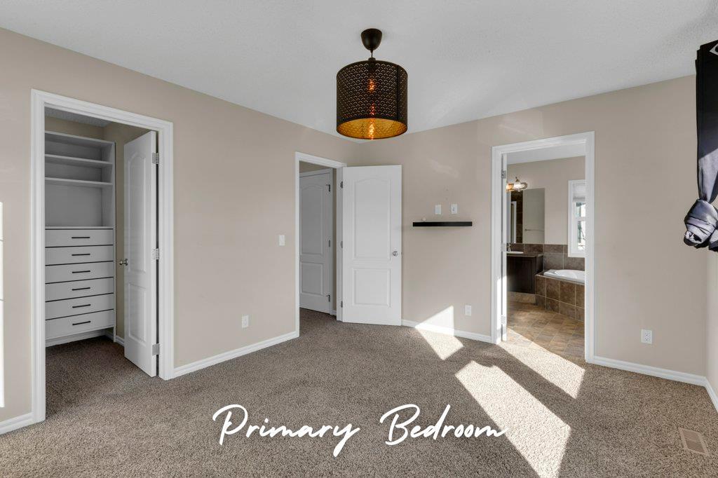 Upstairs you’ll find THREE well-appointed bedrooms, including a spacious primary retreat complete with his-and-her sinks, a relaxing corner soaker tub, stand-up shower, and a walk-in closet with built-in organizer. The convenient upstairs laundry adds everyday functionality and ease.