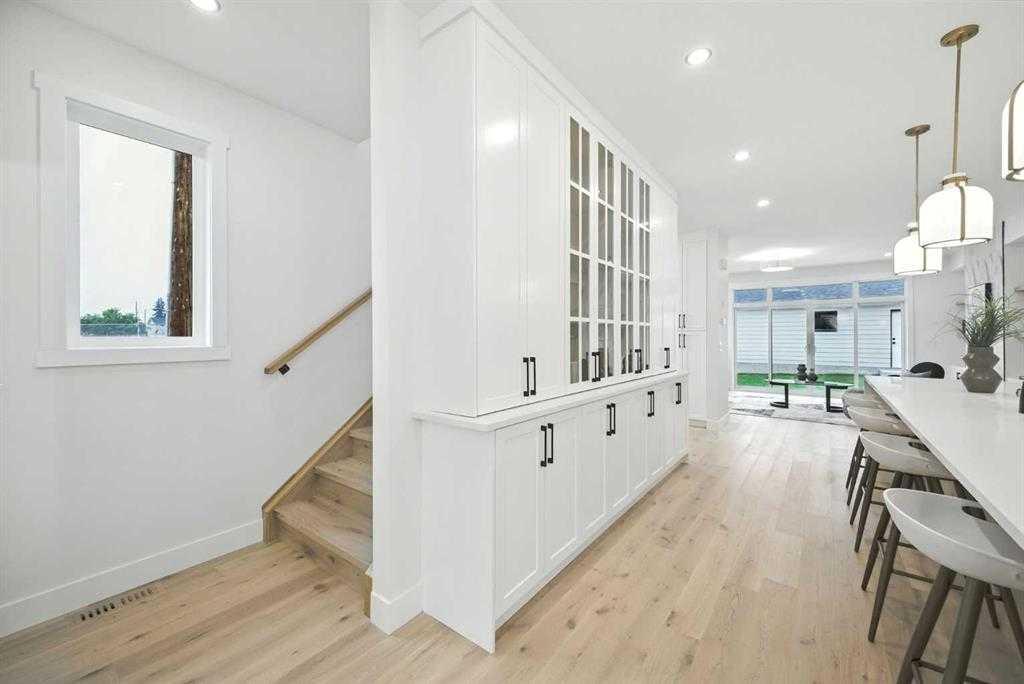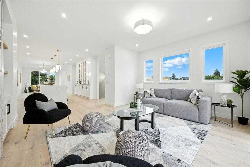 BEST PRICED NEW DETACHED HOME IN AREA...DONRT MISS OUT!!..Set on a prime corner lot in one of Calgary’s most established inner-city communities, this home delivers striking design, exceptional craftsmanship, and everyday livability in Mount Pleasant. Created by Tricor Design Group, this newly constructed home offers a refined yet comfortable lifestyle, blending clean architectural lines with carefully curated finishes. Positioned directly across from a school and framed by professional landscaping, the setting offers both privacy and connection, with Confederation Park, the Mount Pleasant Sportsplex, local playgrounds, and downtown just moments away. Inside, the main floor unfolds into a bright, contemporary living space designed for both relaxed living and effortless entertaining. Large windows invite natural light throughout, highlighting the rich engineered hardwood flooring and stylish gas fireplace with custom built-ins that anchor the living area. The seamless open layout creates a natural flow between the kitchen, dining, and living spaces, offering an ideal backdrop for gatherings of any size. The kitchen is thoughtfully designed with a focus on clean aesthetics and everyday function. Quartz countertops, a dramatic waterfall island, and premium integrated appliances including an oversized refrigerator and Bertazzoni Range create a polished and highly functional workspace. Custom pantry storage enhances organization while maintaining a streamlined look. Expansive sliding doors extend the living space outdoors to a private backyard featuring a concrete patio, green space, and access to the double detached garage - perfect for hosting, relaxing, or enjoying warm summer evenings. Upstairs, the primary retreat provides a calming and well-appointed escape. A sleek electric fireplace adds warmth and ambiance, while the custom walk-in closet offers generous storage. The spa-inspired ensuite elevates daily routines with heated floors, a steam shower, and a freestanding soaker tub designed for total relaxation. Two additional well-sized bedrooms, a full bathroom, and an upper-level laundry room complete this floor, offering practical comfort for family living. The fully finished lower level expands the home’s versatility with a spacious recreation area featuring a modern wet bar and wine fridge, ideal for entertaining or unwinding. A dedicated home gym, fourth bedroom, and full bathroom provide flexible space for guests, work, or wellness. Thoughtfully designed from top to bottom, this home presents a seamless blend of modern style, comfort, and functionality in a sought-after inner-city location, and offers a rare opportunity to experience elevated urban living in a home where design and lifestyle come together effortlessly.