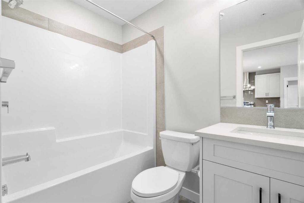 Both bathrooms carry forward the same elevated standard, finished with tile flooring and quartz surfaces. The primary ensuite is designed as a refined retreat, offering dual undermount vanities, a statement 10mm Sydney barn-style sliding glass shower with chrome detailing, and enhanced lighting throughout. A built-in linen tower and additional GFI outlets provide both convenience and thoughtful functionality. The second bathroom mirrors these finishes, maintaining a cohesive, upscale feel across the home.