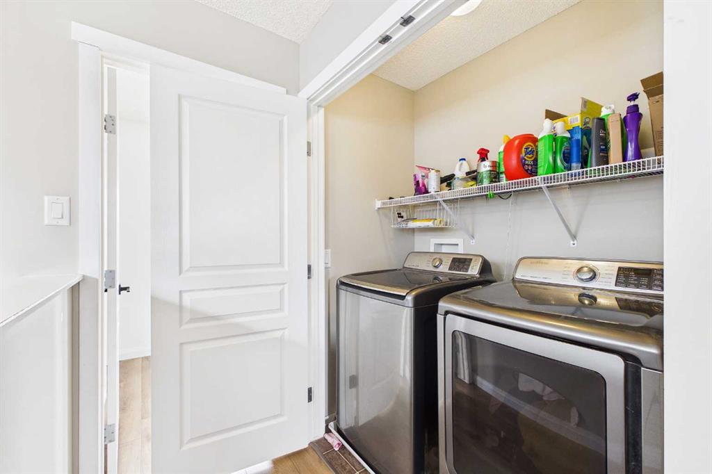 Upstairs, you’ll find a large primary bedroom with a large walk-in closet and full ensuite. Two additional bedrooms and a full secondary bathroom are located on the opposite side of the hallway, offering privacy and functionality for the whole family. For added convenience, the laundry room is also located on the second floor—no more carrying clothes up and down the stairs.