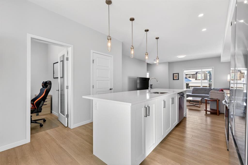 The third floor delivers privacy and comfort, with a spacious laundry room offering additional storage and a west-facing primary bedroom that captures warm afternoon light. The deep walk-in closet and elegant ensuite - complete with dual sinks, quartz countertops, and an oversized shower - create a daily ritual of calm and convenience. Two additional generously sized bedrooms share a well-appointed four-piece bathroom, providing flexibility for family or guests. Beyond aesthetics, this 2022-built Cranston townhome is equipped for the future with a brand new air conditioner, hot water on demand, a heat recovery ventilator, fibre optic high-speed internet, and an oversized insulated double attached garage with a double driveway comfortably fitting four vehicles. The garage is already equipped with an electrical panel for a future EV charger, blending practicality with forward-thinking design. Visitor parking within the complex and additional street parking ensure convenience for guests, while pet-friendly policies with board approval make it easy to bring every member of the family home. Overlooking a scenic wet pond and located near the river pathways of Fish Creek Park, shopping, schools, and everyday amenities, this home offers easy access to the ring road and Deerfoot Trail, connecting you seamlessly to the rest of Calgary.