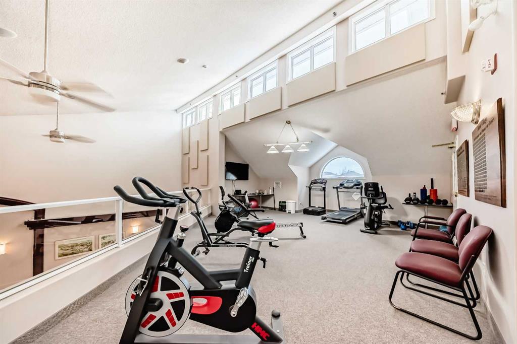 A Fantastic Condo in the desirable Dana Village, one of the nicest 55+ complexes in Calgary! Did you notice the fabulous view of Downtown? Open design that is bright, and easy to navigate, including a Full Kitchen with lots of Storage and an enclosed Pantry. The Master Bedroom has a Walk-In Closet and an Ensuite Bathroom with mobility assists already installed. The second bedroom is a good size with a 3-Piece bathroom nearby. The Laundry Room is spacious with full sized Washer & Dryer. Enjoy the gas fireplace on those winter days and the central Air Conditioning to keep you cool on the hot summer days! Heated, secure, assigned underground Parking Stall and a large Storage Unit that are both easily accessible from the Elevator. Super location with easy access to everything including the LRT, Sunterra Market, Westside Recreation Centre and lots of shopping, services, banking, restaurants, etc. Dana Village is professionally managed with entertainment areas, exercise, games, a large common kitchen for groups and a library too. This is a beautiful unit in a wonderful complex.