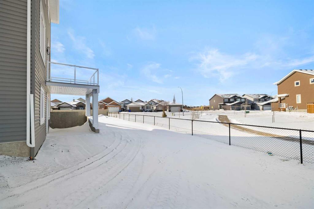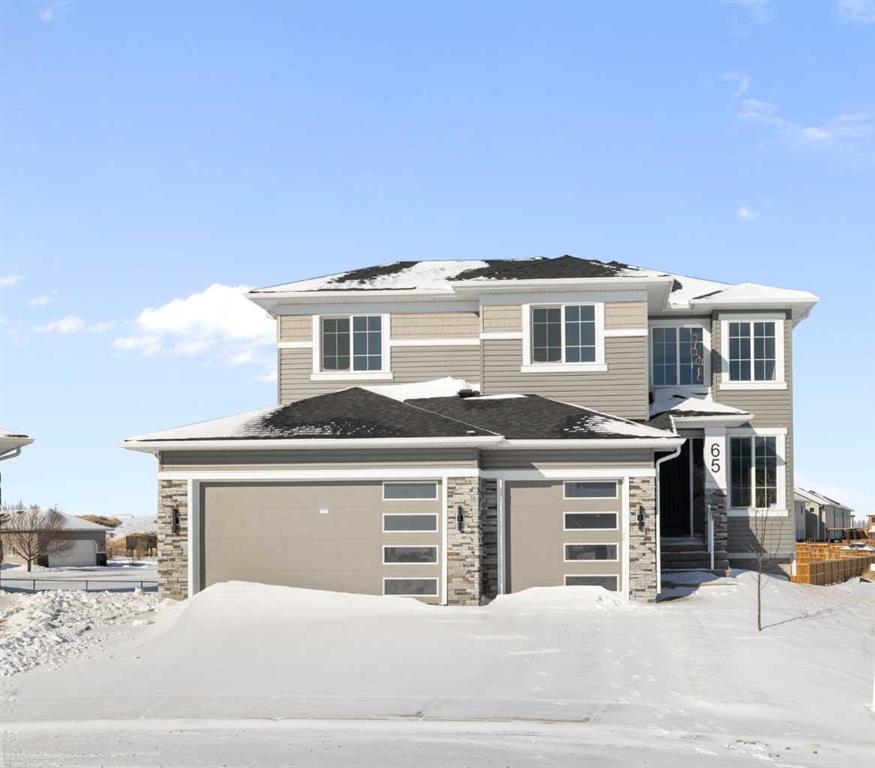 Wake up to peaceful living and views. Step directly onto pathways from your backyard. Tucked away on a quiet cul-de-sac in prestigious Strathmore Lakes Estates, this exceptional walkout home sits on a large pie-shaped lot backing the pathway system with breathtaking lake views. Offering close to 2700 sq ft of refined living space, this modern contemporary residence blends upscale finishes with thoughtful functionality — all anchored by an oversized triple garage, perfect for vehicles, storage, or toys. A dramatic two-storey foyer, open to above, floods the home with natural light and creates an immediate sense of space. The open-concept main floor is designed for both elevated entertaining and everyday comfort, featuring a chef-inspired kitchen with granite countertops, a statement island, walk-through pantry, custom feature walls, gas fireplace and high-end finishes throughout. A standout feature is the full bathroom on the main level, offering flexibility for guests or multi-generational living. The main-floor office can easily convert into an additional bedroom if desired. Upstairs, a bright bonus room provides the perfect family retreat. The primary suite is a true sanctuary, capturing beautiful views and offering a spacious walk-in closet with custom built-ins and a spa-inspired 5-piece ensuite. Two additional generously sized bedrooms — both with walk-in closets — share an impressive 5-piece bathroom, ideal for growing families. The walkout basement remains unfinished — a blank canvas ready for your custom vision. Whether you imagine a home theatre, gym and additional bedrooms the open space makes future development especially compelling. With quick access to over 50 km of scenic pathways in Strathmore, winding through canals and green space, plus the privacy of a quiet cul-de-sac and the bonus of a triple garage, this property delivers luxury, location, and lifestyle in one remarkable package. A rare opportunity to secure one of the community’s most desirable lots with room to grow.