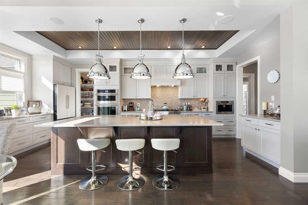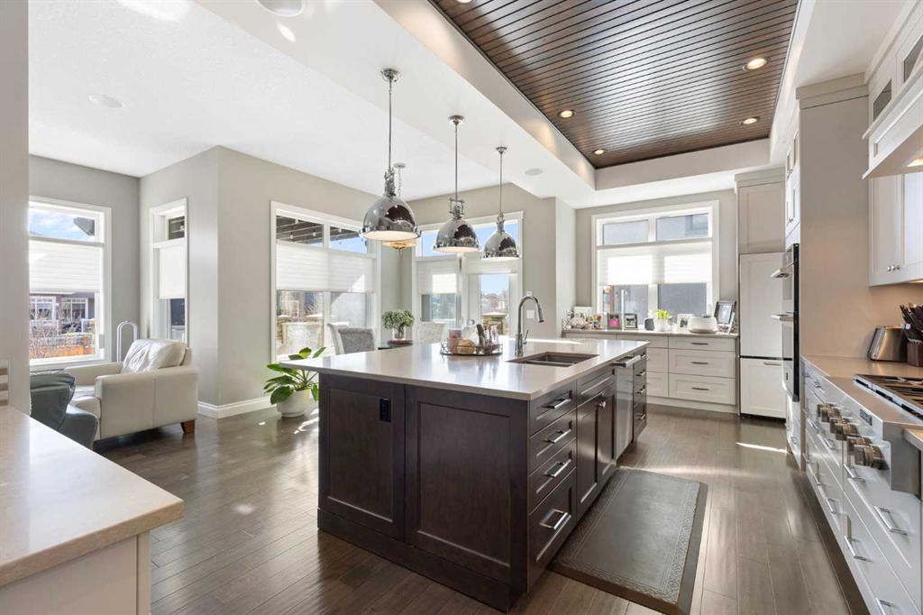 Welcome to this exceptional custom-built residence where timeless architecture, elevated craftsmanship, and advanced technology come together to create a truly remarkable home. Offering 4,343 sq ft of developed living space, this property delivers an outstanding blend of luxury, comfort, and thoughtful design. From the moment you arrive, the striking curb appeal sets the tone with rich timber accents and elegant stone detailing. Inside, soaring 10-foot ceilings, expansive windows, and rich hardwood flooring create a bright, open atmosphere filled with natural light. The heart of the home is the stunning chef-inspired kitchen, designed for both entertaining and everyday living. Anchored by an oversized quartz island, this impressive space features extended pantry storage, custom cabinetry, and high-end appliances. The kitchen flows effortlessly into the dining nook and living room, where a gas fireplace creates a warm focal point. Step outside to one of two decks and enjoy seamless indoor-outdoor living. The formal dining room showcases custom coffered ceilings and direct access to the second deck, offering a refined setting for hosting family and guests. A private home office and a stylish powder room featuring a heated bidet complete the main level. Upstairs, 9-foot ceilings and a thoughtfully designed layout provide both comfort and privacy. A spacious bonus room offers the perfect space for relaxing or movie nights. The luxurious primary suite is a true retreat, featuring large windows, a generous walk-in closet, and a spa-inspired ensuite complete with a freestanding soaker tub, dual sinks, oversized walk-in shower, and heated bidet toilet. Two additional bedrooms, a beautifully finished full bathroom with dual sinks and separate shower and toilet space, along with convenient upper-level laundry, complete this floor. The fully developed basement expands the home’s entertaining potential with a large recreation room featuring a second gas fireplace and a custom bar highlighted by a striking stone wine feature wall—perfect for displaying your collection. This level also includes an additional bedroom, a full bathroom, and a hidden secure safe room. Modern comfort is seamlessly integrated throughout with Control4 smart home automation, built-in speakers throughout, fully automated window coverings, and Nest thermostats, allowing effortless control of lighting, sound, climate, security and privacy. The oversized 2.5-car garage features three garage doors (two front and one side) and includes a workshop area, ideal for hobbies or additional storage. Also, set up for two charging stations. Outside, the beautifully landscaped and fully fenced yard offers the perfect balance of relaxation and entertaining. The fence was custom -built with stone corner pillars to match the house. Also complete with underground sprinklers, a custom-built shed, two decks, and a pergola. Upgrades include two furnaces, tankless hot water, and a water softener all 4 years old.