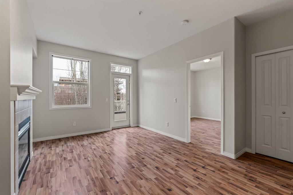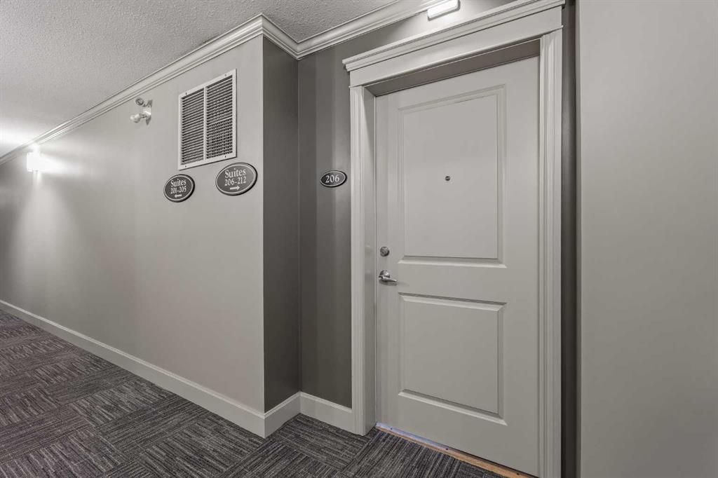 Welcome home to #206 of The Courtyards at Garrison Woods, an exceptional opportunity to live in one of Calgary’s most sought after inner city communities, just steps to the vibrant shops, cafés, and boutiques of Marda Loop. This beautifully appointed 739 sqft one bedroom, one bathroom residence offers an elegant blend of comfort and functionality, ideal for professionals, first time buyers, or savvy investors. Soaring 9’ ft ceilings create an immediate sense of space, while the wide, open concept living room provides exceptional layout flexibility; perfect for both entertaining and everyday living. A cozy gas fireplace anchors the space, adding warmth and ambiance year round. The thoughtfully designed kitchen features a generous peninsula with seating, offering both additional prep space and an inviting gathering spot. Whether hosting friends or enjoying a quiet evening at home, the seamless flow between kitchen and living area enhances the overall experience. Just off of the living room, tucked in behind closet doors, is a built-in desk. This provides options such as working from home (you can close the doors on your office to have it completely separate!), a dedicated beverage station, or additional storage space. The primary bedroom retreat is naturally brightened by two large windows, which provides a sense of serenity and relaxation. The bedroom also includes a convenient walkthrough closet that leads directly into the well appointed bathroom, creating a private, ensuite-style feel. A dedicated in suite laundry room adds everyday practicality, while the private balcony overlooking the beautifully landscaped courtyard provides a peaceful outdoor escape, ideal for morning coffees or unwinding at the end of the day. Residents also enjoy secured, heated underground parking with a car wash bay and storage lockers. Strategically located in the middle of the complex, is an impressive amenities building. Complete with a swimming pool, fully equipped fitness area, party room, and guest suites - an extension of your living space that enhances both lifestyle and convenience. Units in this building rarely come up, as it is unique to find this style of complex (adults 18+ and separate amenities building), tucked in from behind the hustle and bustle of Marda Loop. All of this, just a five minute stroll to the best of Garrison Woods and Marda Loop - trendy restaurants, specialty grocers, fitness studios, and everyday essentials - offering an unmatched walkable urban lifestyle in one of Calgary’s most established and charming neighbourhoods. Fantastic value in this wider than your average one bedroom, one bathroom unit, with reasonable condo fees that include all the amenities. Contact your favourite realtor to schedule a private showing, and make #206 your new home!