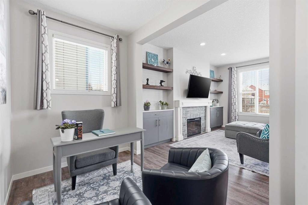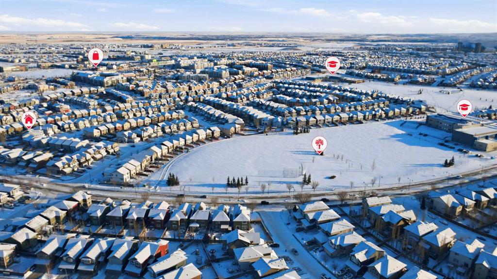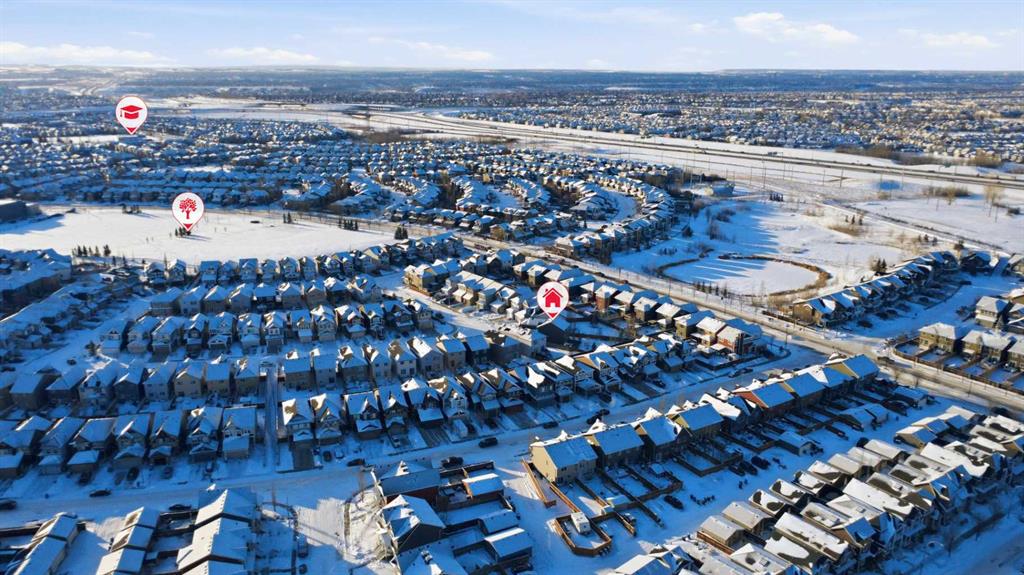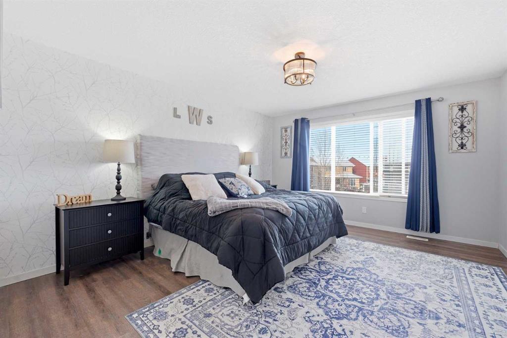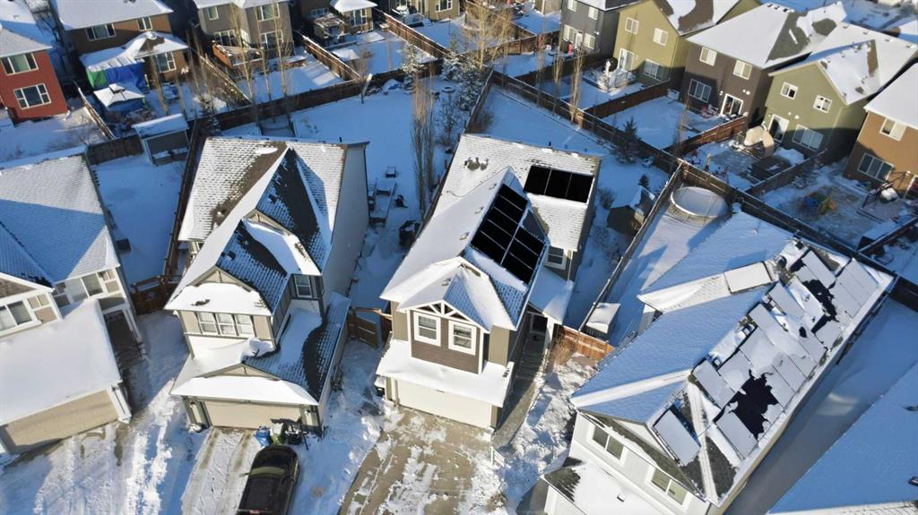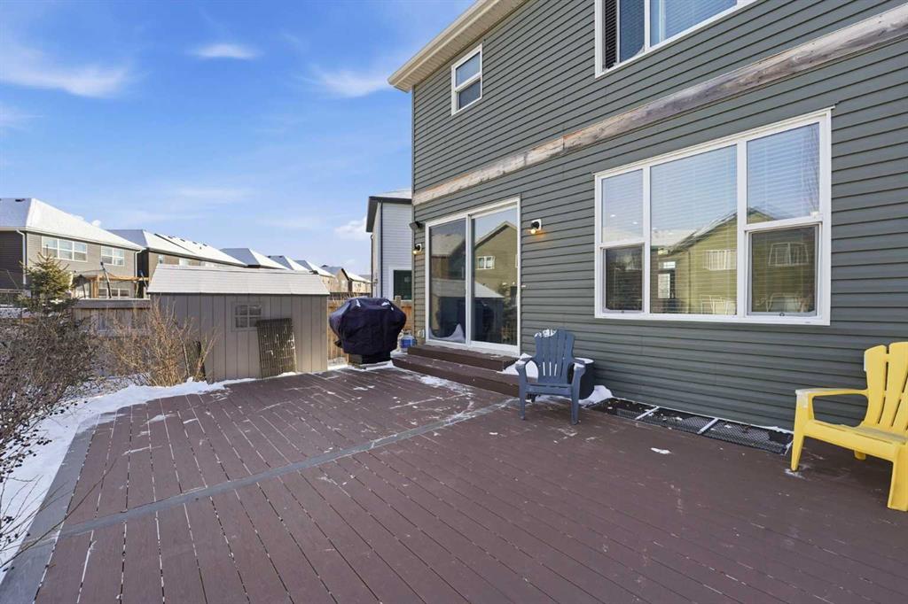 Welcome to the ultimate lake-lifestyle retreat in Auburn Bay. Set on one of the largest lots in the area; an impressive 50% larger than the average! This nearly 2,100 sq. ft. home offers a rare fusion of space, sustainability, and sophisticated style. The heart of the home is a chef-inspired kitchen, featuring floor-to-ceiling cabinets, a spacious pantry, and one of the largest islands you will ever see, comfortably seating six. This space is perfect for hosting Sunday brunch or evening entertaining. The living room features a cozy fireplace, and the dedicated office nook is a great added feature for modern work or study. The main & upper floors flow seamlessly with durable vinyl plank flooring and an open-concept layout, all bathed in natural light. Upstairs, you will discover a massive bonus room, three spacious bedrooms, including the primary suite with a luxurious ensuite and a walk-in closet. A built-in desk area and a dedicated laundry room complete this level. This home is packed with high-value upgrades designed for efficiency and comfort, including fully paid-off solar panels to curb utility costs, triple-pane windows for superior energy efficiency, central A/C, and a water softener. Outside, enjoy the MASSIVE fenced backyard with tons of trees for added privacy, complete with a huge, maintenance-free deck, a stamped concrete area perfect for a fire pit, and an in-ground irrigation system ensuring a lush, beautiful lawn. This rare and complete package is truly a find in this area. Don’t miss out!