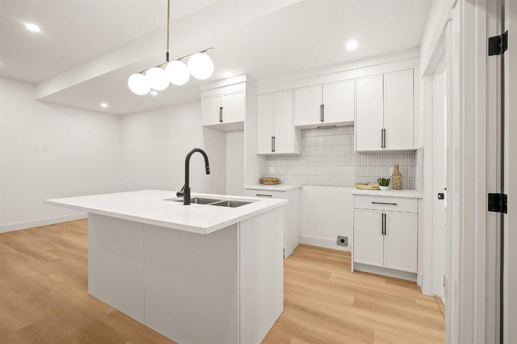 The self-contained legal basement suite in NW Calgary includes a full kitchen with quartz countertops, custom cabinets, island with seating, separate laundry, two bedrooms, and a 4-piece bathroom. Perfect as a rental suite, investment property, secondary suite, or in-law suite.