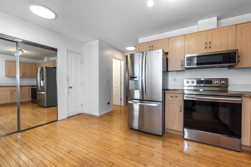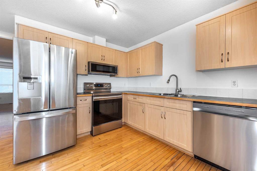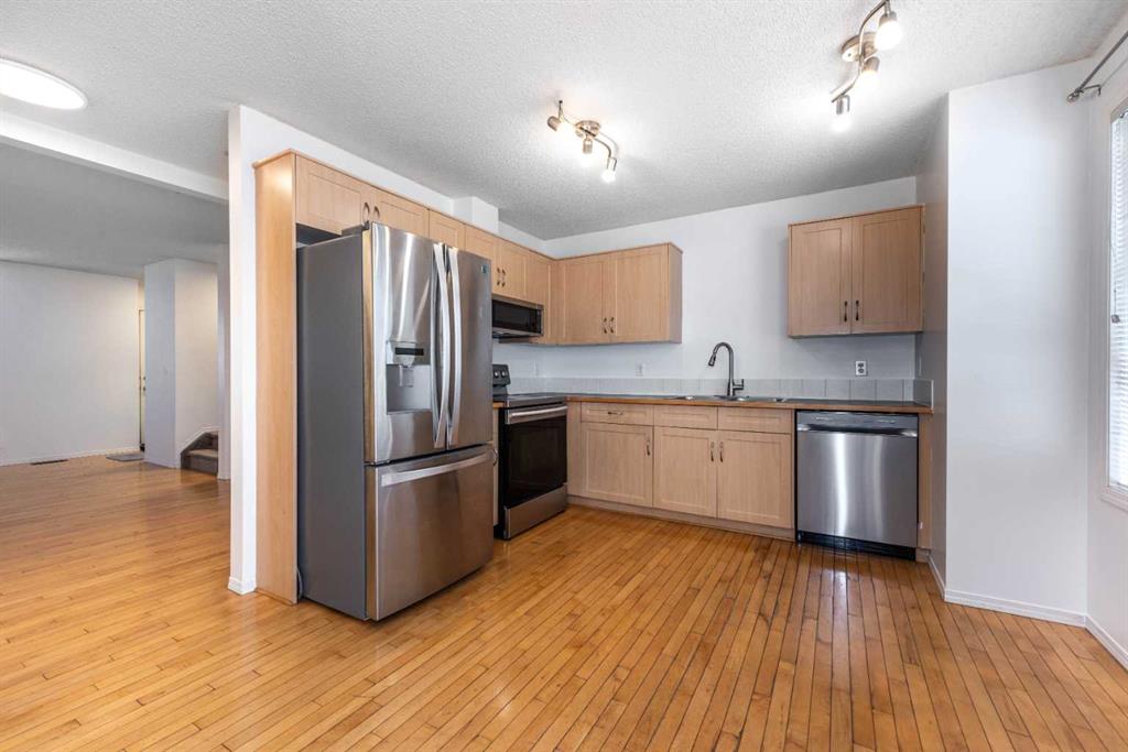 Inside, you’ll love the thoughtful upgrades, including hardwood flooring on the main level, a cozy gas fireplace, and stainless steel appliances with a convenient pantry in the kitchen. The main floor features a bright living room, a 2-piece bathroom, and an open-concept kitchen with access to your backyard – perfect for relaxing or entertaining.