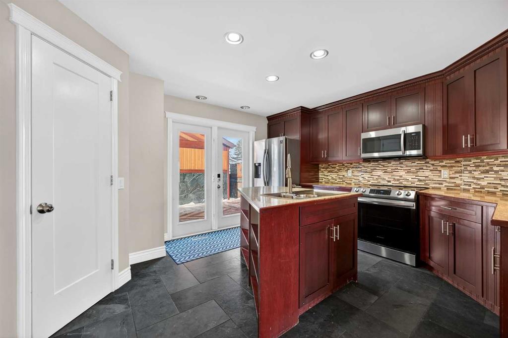 Located on a quiet street, this charming fully developed two-storey detached home offers a highly functional layout designed for everyday living and entertaining. The main floor welcomes you with an inviting living room that flows seamlessly into the dining area, creating a warm and cohesive space. The well-appointed kitchen is thoughtfully positioned nearby and features an island with breakfast bar, stainless steel appliances (all updated in 2021), ample cabinetry and counter space, and a convenient pantry. A two-piece powder room completes this level. Together, these living areas are ideal for hosting gatherings or enjoying quality family time. Upstairs, retreat to the spacious primary bedroom with a large closet, while two additional bright bedrooms and a four-piece bathroom provide flexibility for family, guests, or a home office. The developed basement adds even more living space with a comfortable recreation room, along with laundry and an additional den or storage room. Notable updates include a hot water tank (2021) and a high-efficiency furnace. Step outside to a low-maintenance backyard featuring a massive walk-around deck and patio—no grass means no summer upkeep. The oversized garage offers excellent storage, and RV parking is an added bonus. Ideally located close to playgrounds, parks, and Erin Woods School (just a five-minute walk), with shopping, amenities, an ice rink, and additional schools nearby. Quick access to Downtown, Deerfoot Trail, Stoney Trail, and Barlow Trail makes commuting a breeze. This well-loved home offers outstanding value and lifestyle convenience—book your showing today!