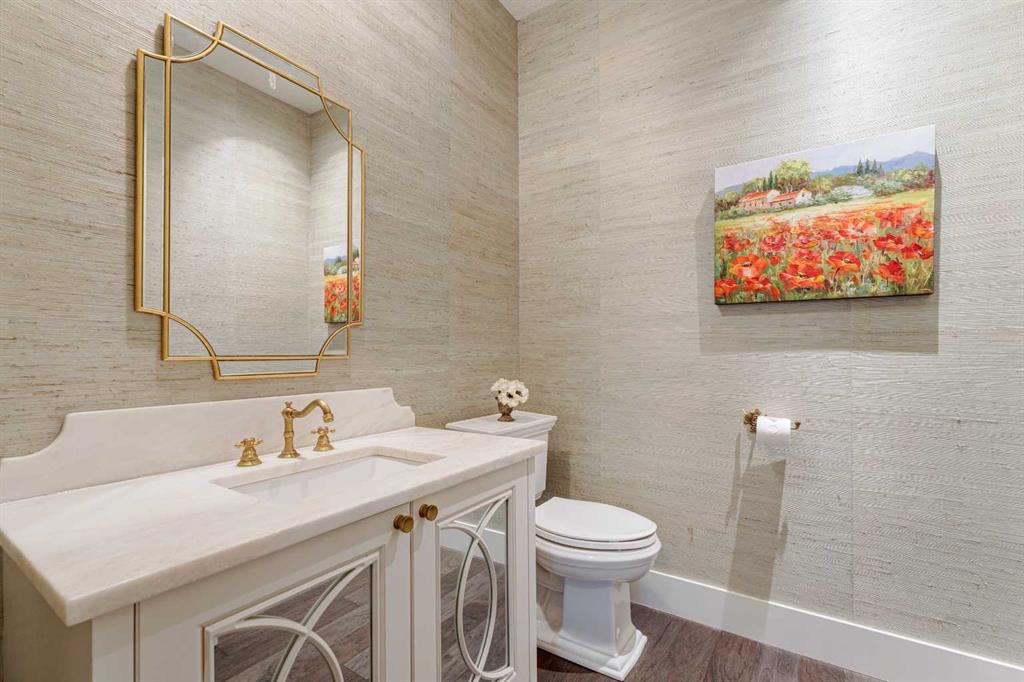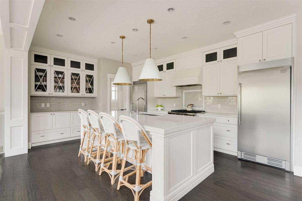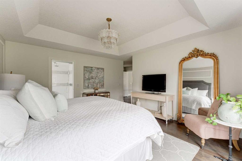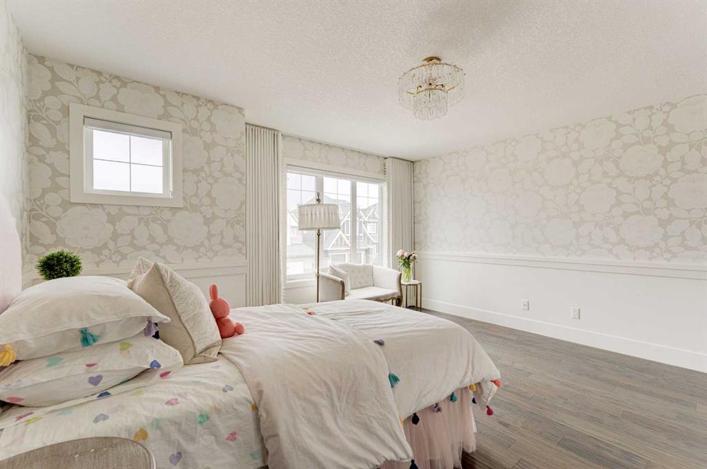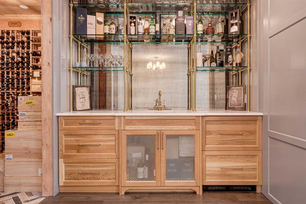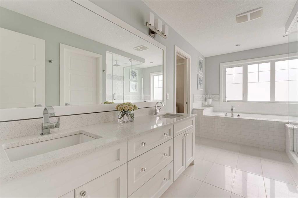 OVER 200K+ IN RECENT RENOVATIONS- BACKS PATHWAY | IMMACULATE MOVE IN READY | TONS OF UPGRADES- Welcome to this stunning home in the prestigious neighborhood of Aspen, Calgary, offering over 4,400 sq ft of meticulously designed living space. This residence exudes sophistication and style, boasting 4 spacious bedrooms and 3.5 beautifully appointed bathrooms. Upon entering, you are greeted by an inviting open floor plan adorned with extensive custom built-ins throughout, creating a seamless flow throughout the home. The state-of-the-art kitchen is a culinary enthusiast's dream, featuring a massive central island, professional-grade appliances, and sleek cabinetry, perfect for entertaining and everyday family life. Adjacent to the kitchen is a cozy dining area with views of the professionally landscaped backyard, which backs onto a serene green space and walking path, providing a tranquil backdrop for outdoor gatherings. The main floor also includes a bright and airy living room with open-to-above ceiling, and a gorgous tiled fireplace, offering the perfect spot for relaxation. Upstairs, the primary suite is a true retreat, complete with a luxurious ensuite bath featuring a soaking tub, a separate shower, and dual vanities. Two additional well-sized bedrooms, convenient laundry, and a full bathroom complete the upper level. The professionally finished basement offers versatile spaces for family and guests, featuring a bedroom with custom-built bunk beds, a large family room with built-in entertainment center, and an impressively designed custom hidden wine cellar. For added security and convenience, an "arming drawer" is discreetly incorporated in the home, providing peace of mind. With central air conditioning, a triple attached garage, and meticulous attention to detail throughout, this home is designed for modern luxury living. Extensive landscaping adds to the curb appeal both front and back - enjoy the multi-level deck and patio spaces with pergola, fire pit, and planter boxes, with access to the walking path behind. Situated within one of Calgary's top communities, Aspen Woods provides schools, shopping, transit and more within minutes. Don’t miss the opportunity to make this exceptional property your new home. WHY SETTLE FOR A COOKIE CUTTER HOME!