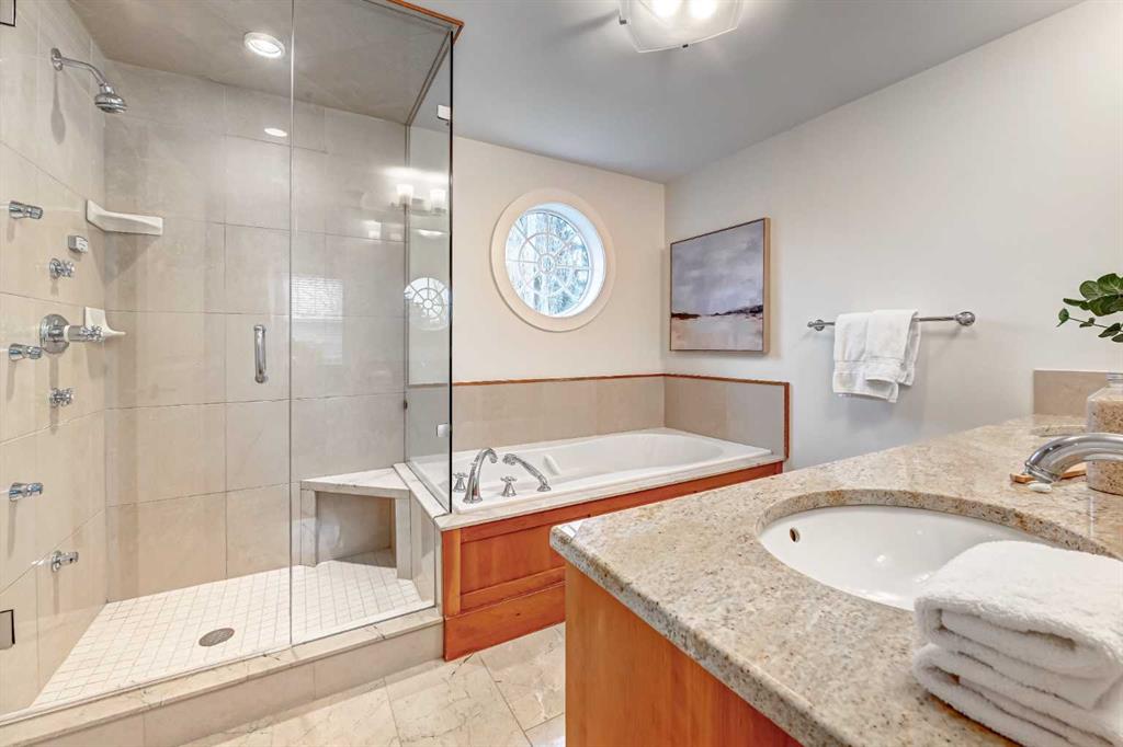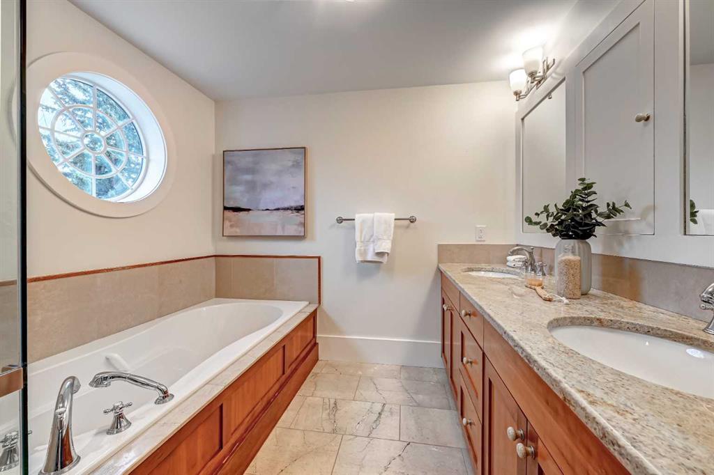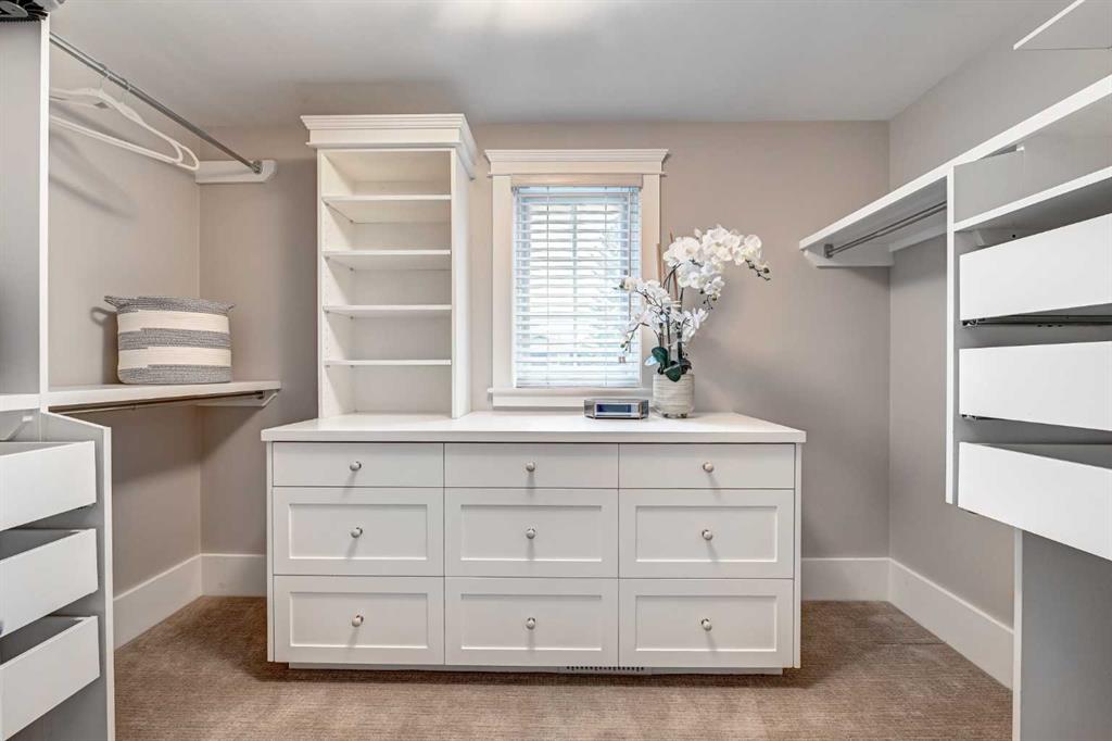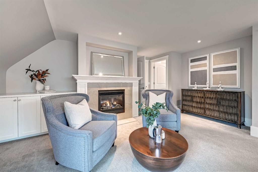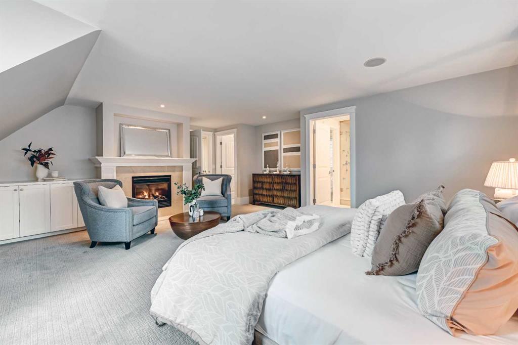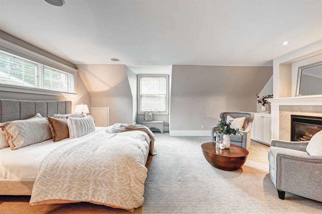 Upstairs, you’ll find four spacious bedrooms, including an impressive primary suite with its own fireplace, a generous walk-in closet with custom built-ins, and a spa-inspired ensuite. The well-designed secondary bathroom offers separate vanity and bath/shower areas for added functionality.