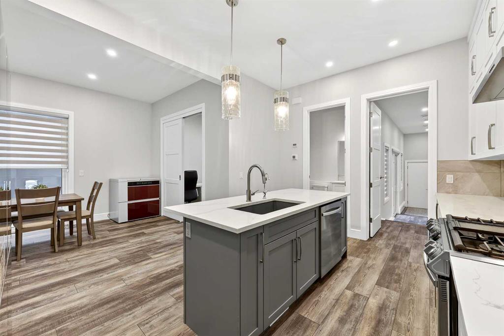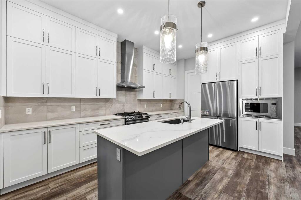 Triple Car Garage | 2-Bedroom legal Suite Over Garage Earning $2,100/Month | Over 3,400 square feet of living space. This home is a thoughtful nod to multigenerational living, anchored by a triple car garage that is cleverly split into a double and a single bay. A carriage house over the garage offers a legal suite featuring 2 beds 1 bath and over 750 sqft of space. As you step inside the main house, you’re welcomed by high ceilings and large, sun-filled windows that create a bright and open feel. The main living room features a beautiful gas fireplace, perfect for relaxing evenings at home. The kitchen is both stylish and functional, complete with granite countertops, soft-close cabinetry, and a gas stove — ideal for everyday living and entertaining. A spacious mudroom offers access to the backyard deck and the triple attached garage. The main floor also includes a generous den or home office and a convenient 2-piece bathroom. Upstairs, you’ll find three well-sized bedrooms, each with its own private ensuite — a rare and highly desirable feature. The upper-level laundry room includes a sink for added convenience. The primary bedroom is a true retreat, showcasing a stunning 5-piece ensuite and a walk-in closet with plenty of space. The fully finished basement adds even more versatility, featuring two additional bedrooms and a large entertainment area complete with a wet bar — perfect for hosting family and friends. The carriage house legal suite is fully self-contained with two bedrooms, a 4-piece bathroom, and a beautiful kitchen equipped with stainless steel appliances, a pantry, and ample storage. This exceptional property offers space, comfort, and flexibility — all designed to support modern multigenerational living.