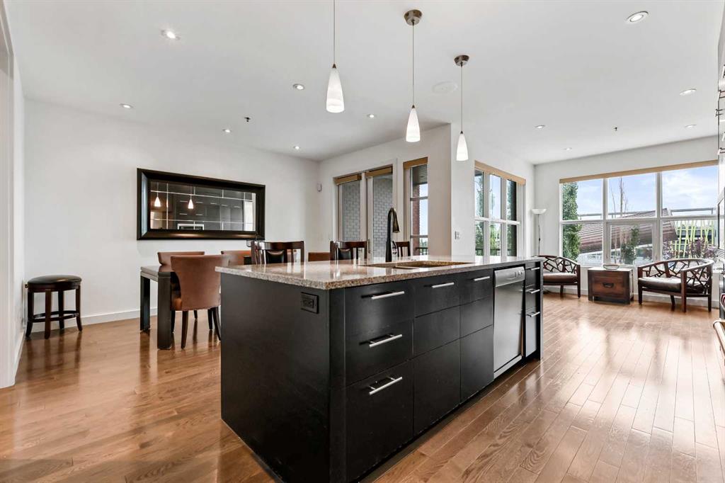 Experience elevated townhome living at 606 Aspen Meadows Hill SW – a luxurious 3-bedroom, 4-bathroom residence in the prestigious community of Aspen Woods. Built in 2020, this executive home is thoughtfully designed with a private in-suite elevator, upscale finishes, and a highly functional layout that suits both relaxed living and stylish entertaining. The main floor is bright and airy, featuring 9’ ceilings, engineered hardwood flooring, and elegant built-ins. The kitchen is a chef’s dream with granite countertops, a center island, gas cooktop, wall oven, and a stainless steel French-door refrigerator. A bright dining area opens through French doors to a sun-drenched west-facing patio, ideal for relaxing or hosting.