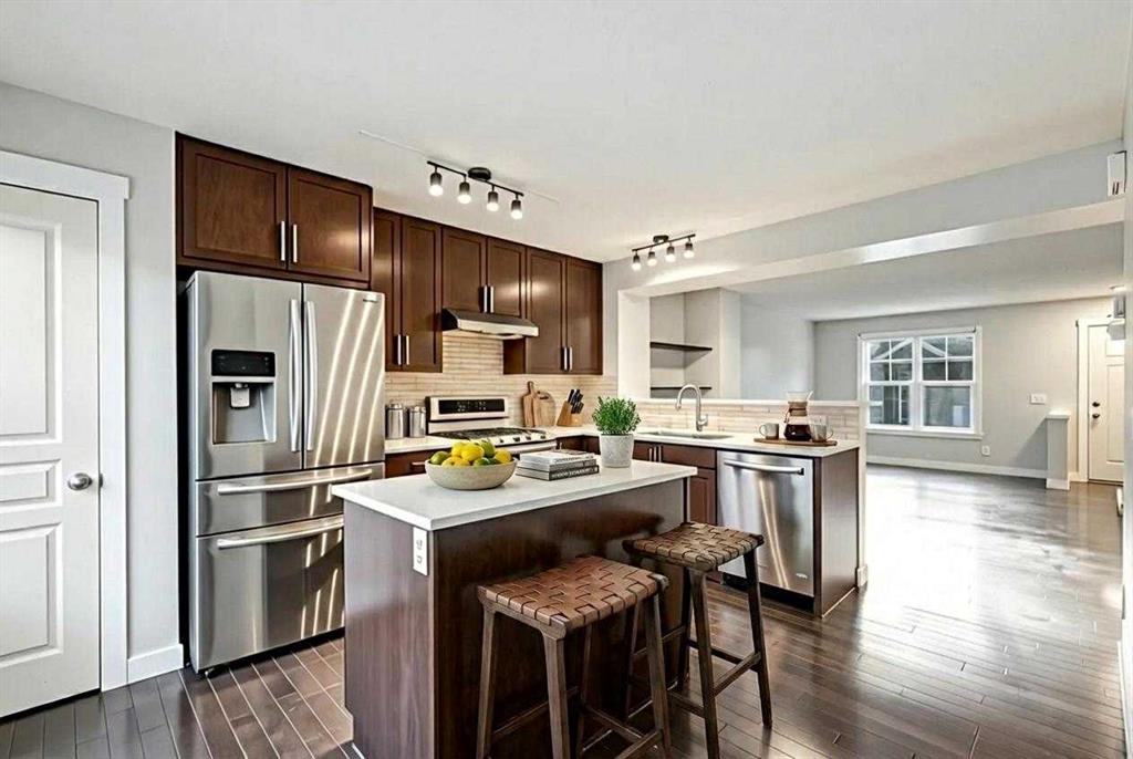 Welcome to this well laid out 3-bedroom townhouse in the heart of McKenzie Towne, where style and convenience meet. Step inside to a bright, open-concept main floor with large windows that fill the home with natural light. The home has been FRESHLY PAINTED and updated with NEW light fixtures. The modern kitchen features stainless steel appliances and generous counter space, opening to the dining and living areas that create a comfortable setting for family time or entertaining friends. Upstairs, the spacious primary suite offers a walk-in closet and a private ensuite. Two additional bedrooms provide flexibility for children, guests, or a home office. The lower level offers extra storage, while the double attached garage keeps your vehicles warm and secure through the winter month. No more clearing snow in the morning or searching for parking after work.