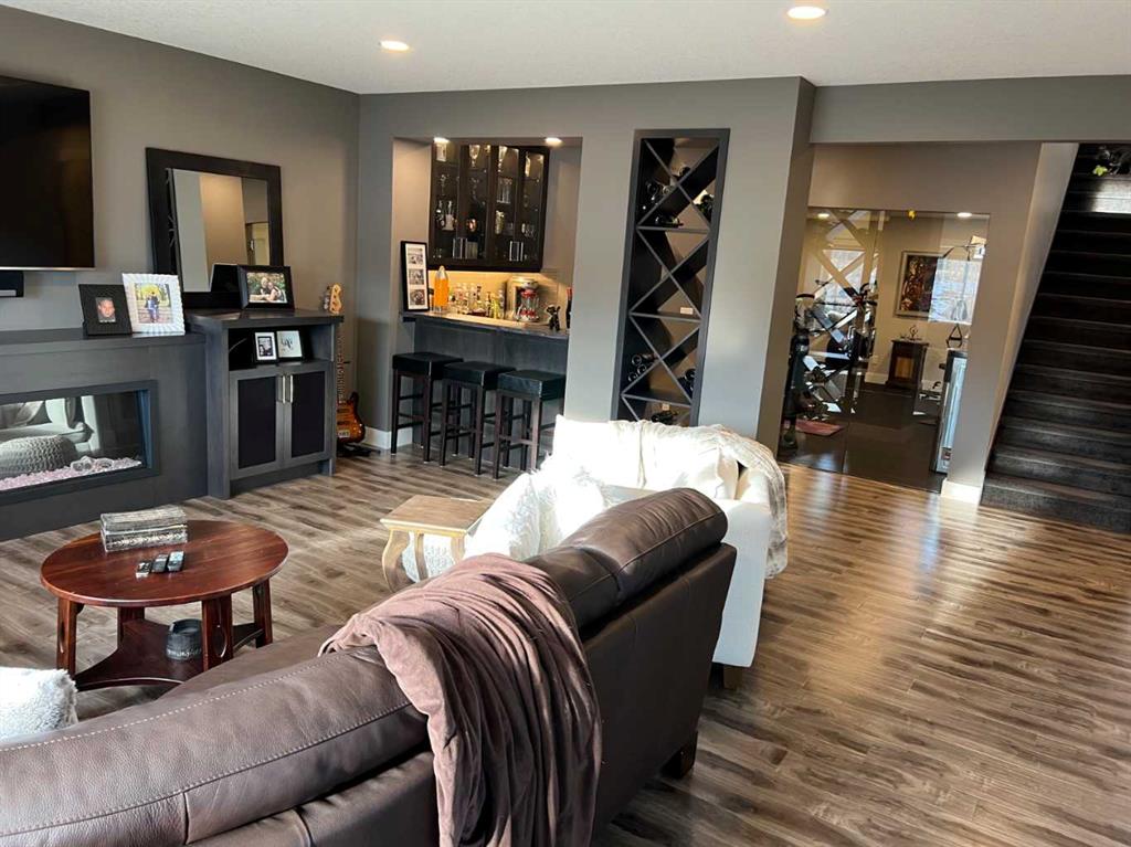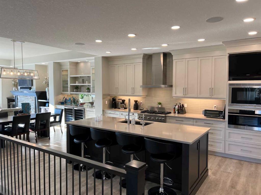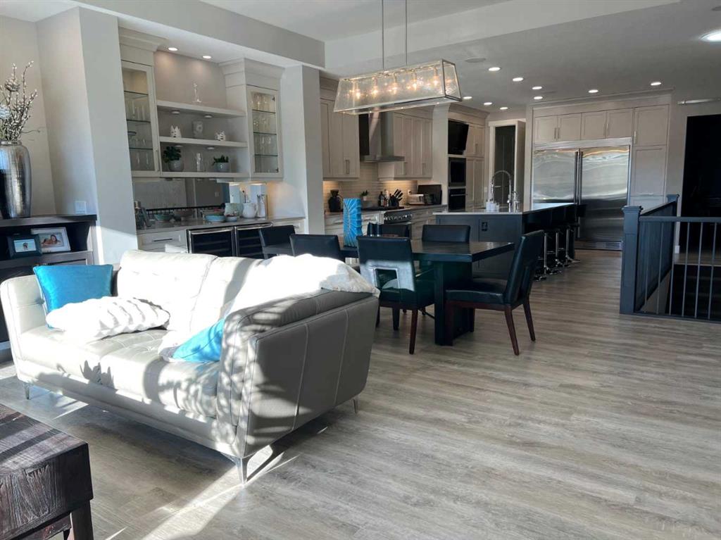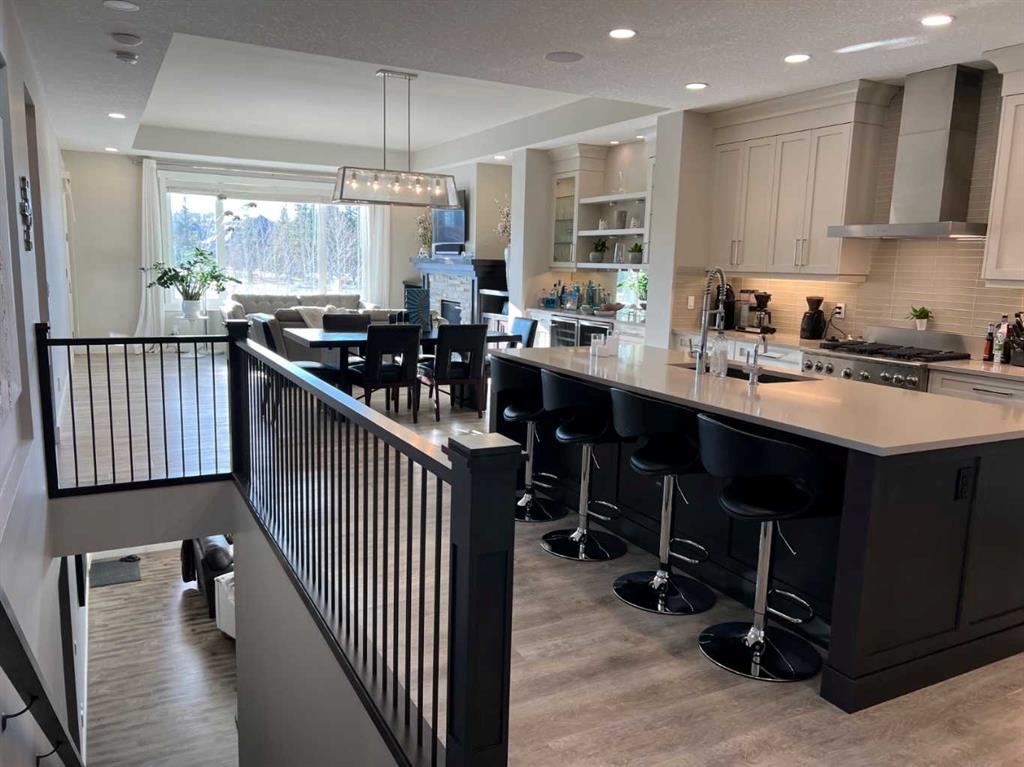 Click Brochure Link for more details. A rare opportunity to own one of the most desirable estate villas in the lock & leave community of Swift Creek Estates, nestled within the beautiful Elbow River Valley. The last comparable (over a year ago) sold in days - and none have come to market since. Built in 2019 and exceptionally lightly lived in, this move-in ready walkout bungalow offers the largest floorplan with almost 3000sqft fully developed, the largest garage, and sits on one of the largest lots (.15 acre) in the community. Positioned on a premium south-facing end lot, the home captures both morning sunrises and evening sunsets, surrounded by the beautiful Elbow Springs golf course and Fisherman’s Lake. $200k in carefully selected upgrades elevate the home well beyond the original builder spec. 10 & 9’ ceilings, upgraded flooring, designer fixtures, extensive custom millwork, and built-in home audio with a multi-zone in ceiling SONOS system create a refined yet extremely comfortable living environment. The kitchen features quartz countertops and an upgraded premium stainless steel appliance pkg with a Wolf steam oven, 36” dual fuel range, full-size fridge and freezer, convection microwave, custom pull-out pantry tower, and extensive full-height cabinetry. The dining area showcases built-in glass cabinetry with dual wine fridges, while the lower level offers a fully appointed wet bar with a custom decorative wine wall, built-in glass cabinetry & beverage fridge — ideal for entertaining. The spa-inspired steam shower is complemented by an RO & remin system with dechlorinated water & softener. The on-demand under sink system provides both hot & cold water and the laundry/mudroom contains sink as well as steam washer & steam dryer. The lower level bedrooms feature custom millwork and both family room & rec room boast fireplaces with custom millwork with mesh-cabinetry and hidden electrical for audio components. Built-in mirrors and art niches throughout. Central A/C as well as full-power screens on the upper deck create a true 3-season outdoor living space. The oversized, heated double garage is a standout feature, complete with hot & cold water, dog wash station, full ProSlat wall system, and commercial-grade shelving & can easily accommodate a lift for car enthusiasts. Professionally landscaped with the addition of 27 trees & 55 shrubs, as well as upgraded wifi smart-watering irrigation, the property offers both privacy & beauty. Security is thoughtfully addressed with home monitoring as well as the on-site manned community security — ideal for a lock-and-leave lifestyle.